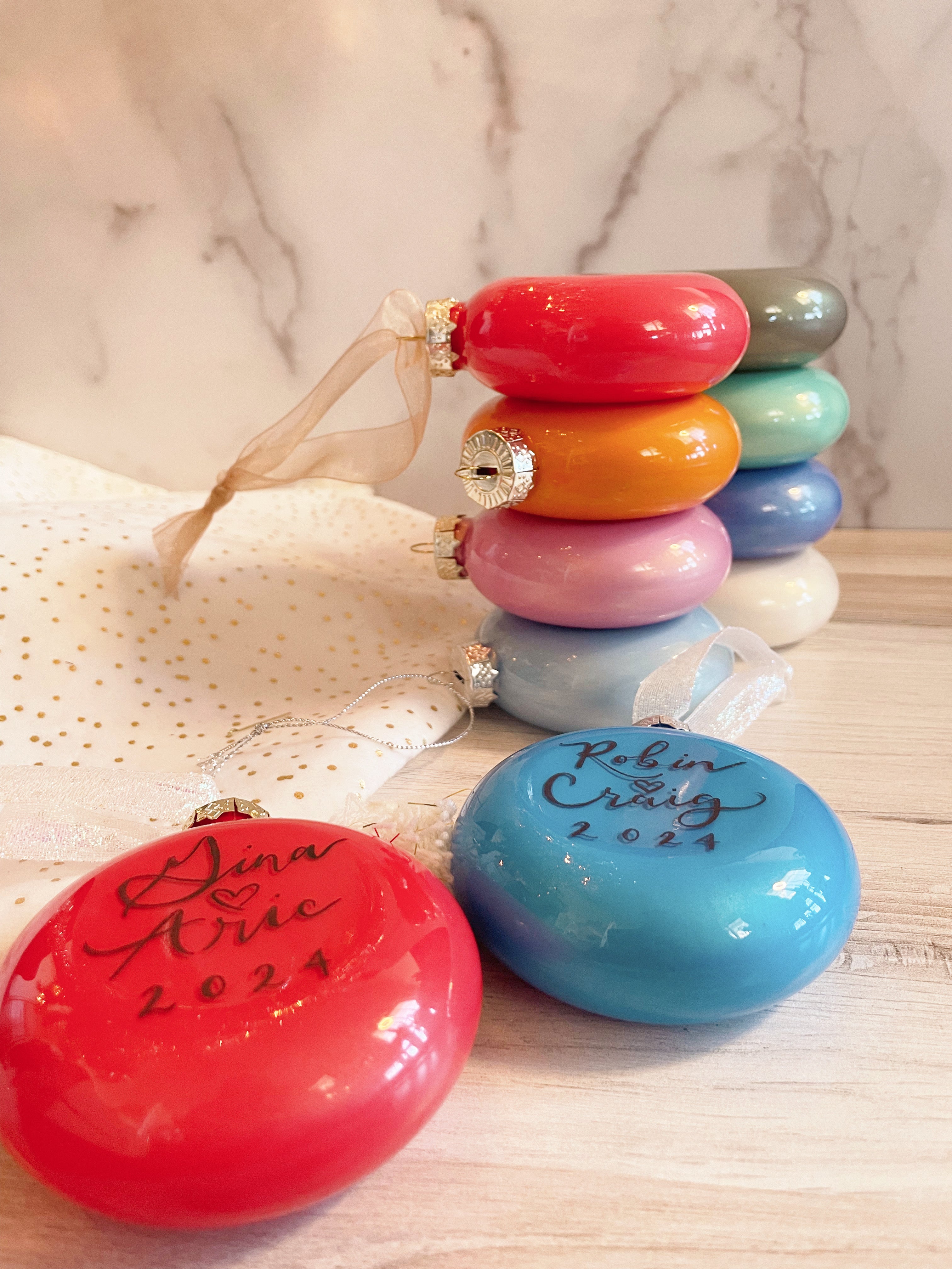 Customized Hand-Engraved Paint-Filled Flat Bubble Glass Ornaments