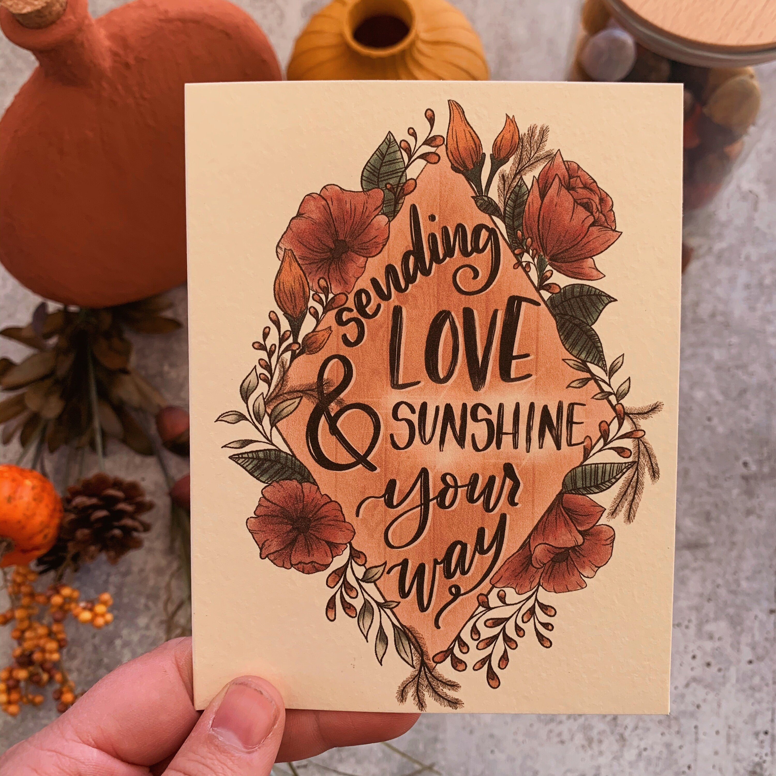 Sending Love and Sunshine Your Way Greeting Card, A2 Card with envelope