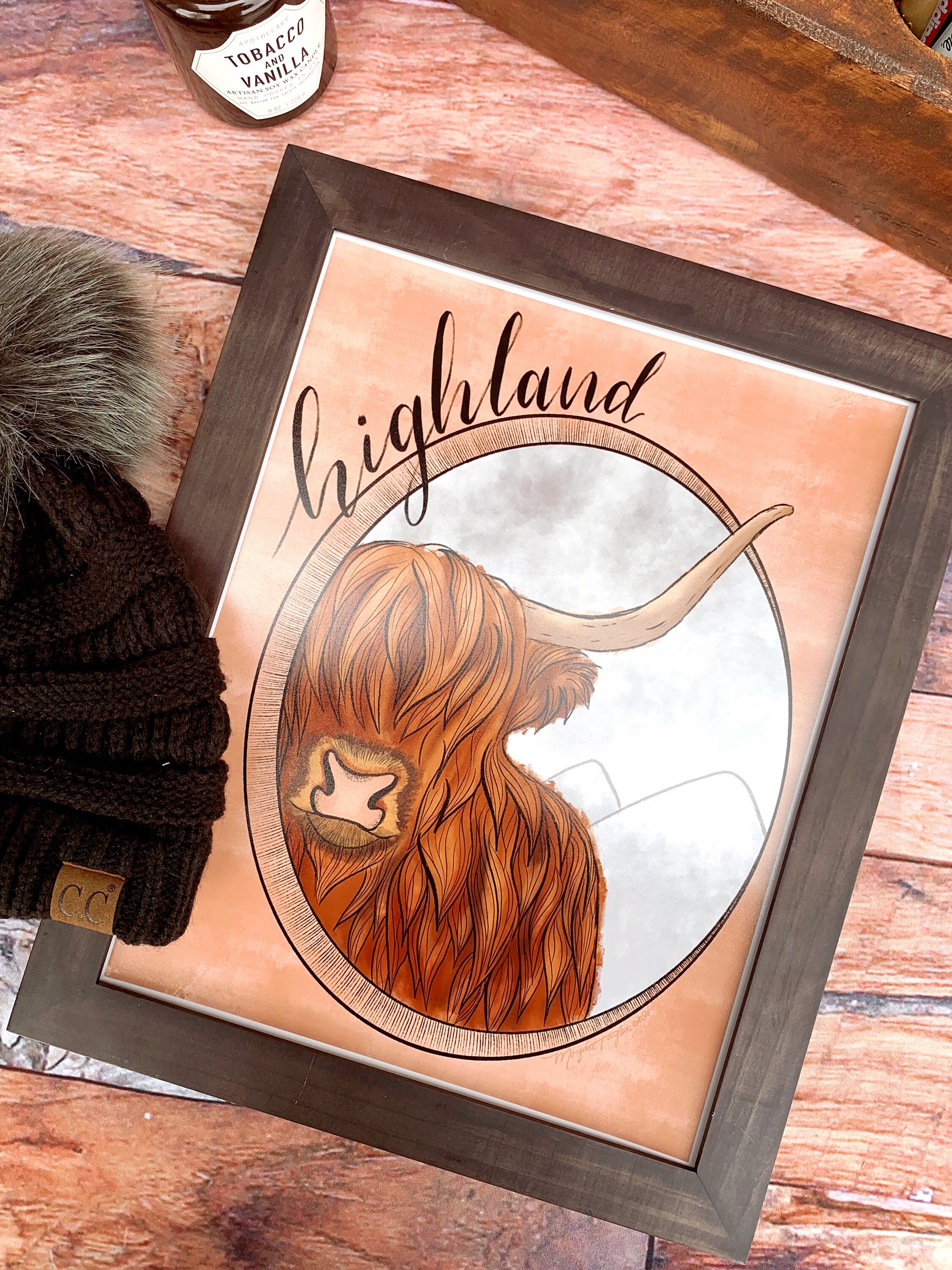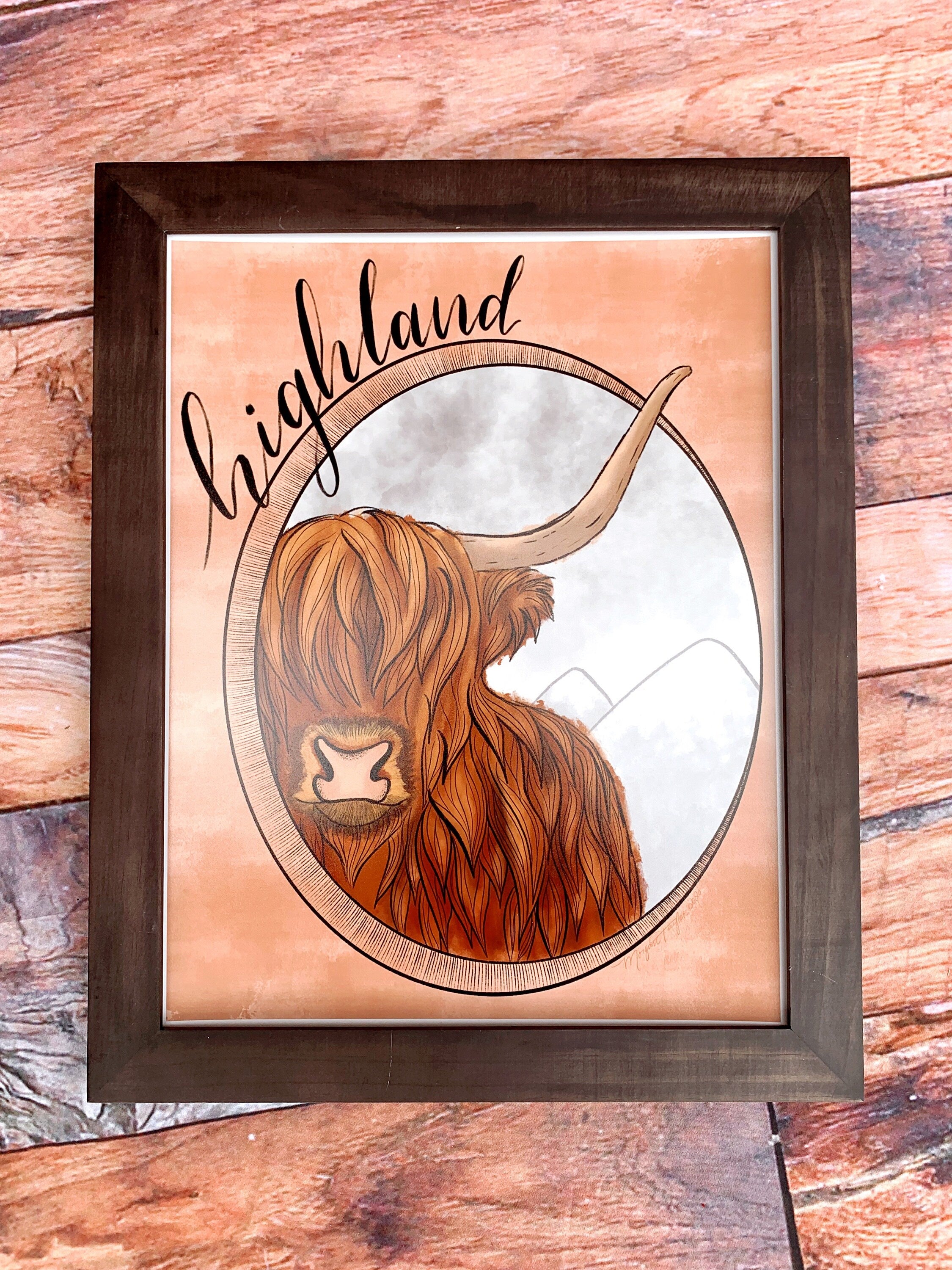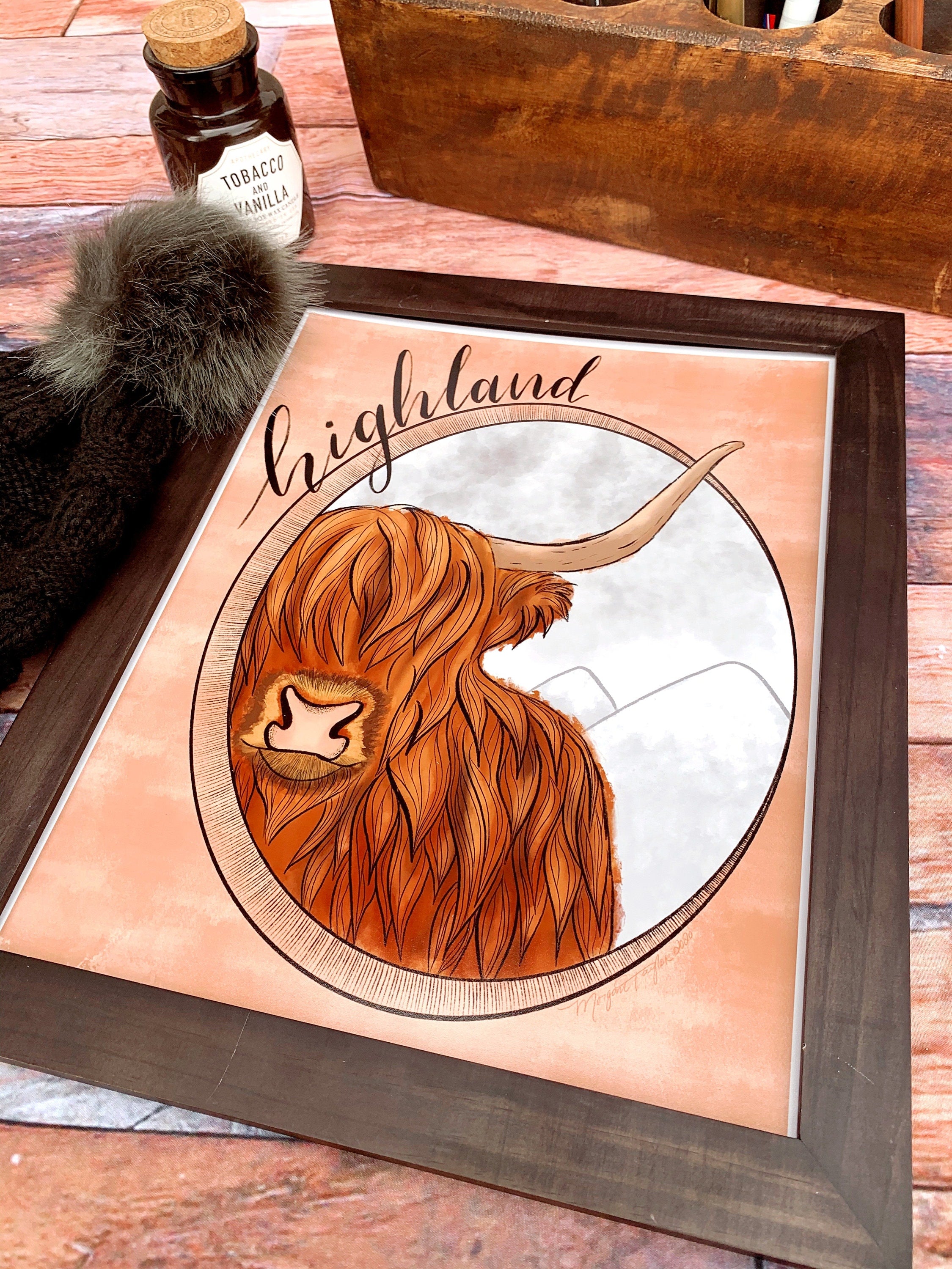 Highland Cow Art Print, Calligraphy Wall Hanging, Cow Artwork