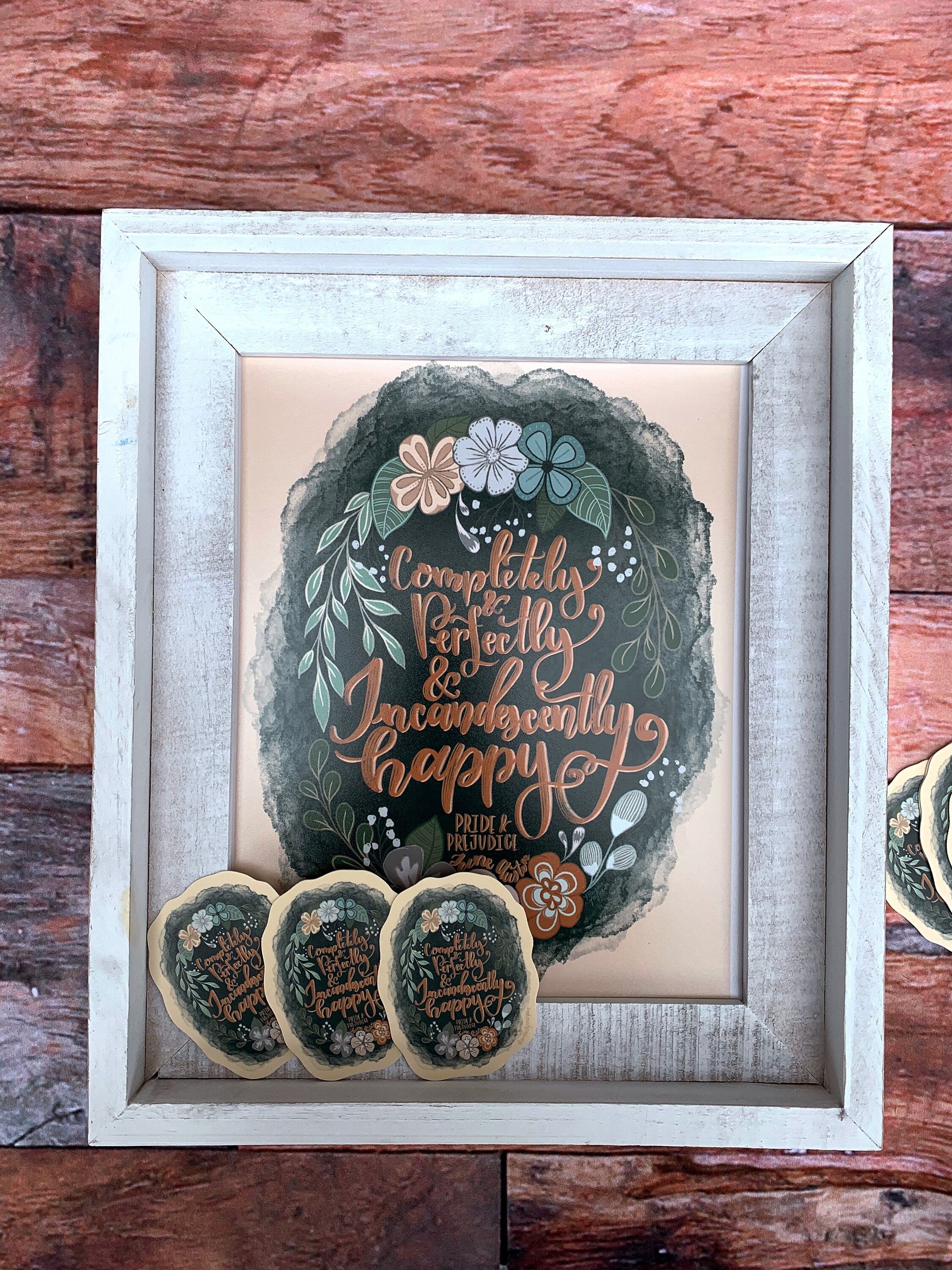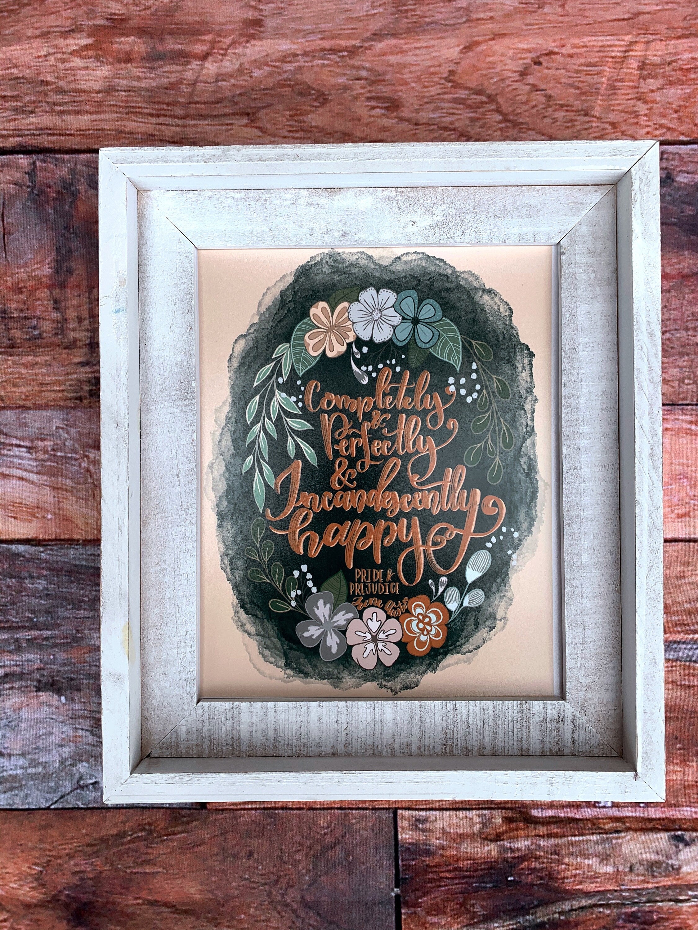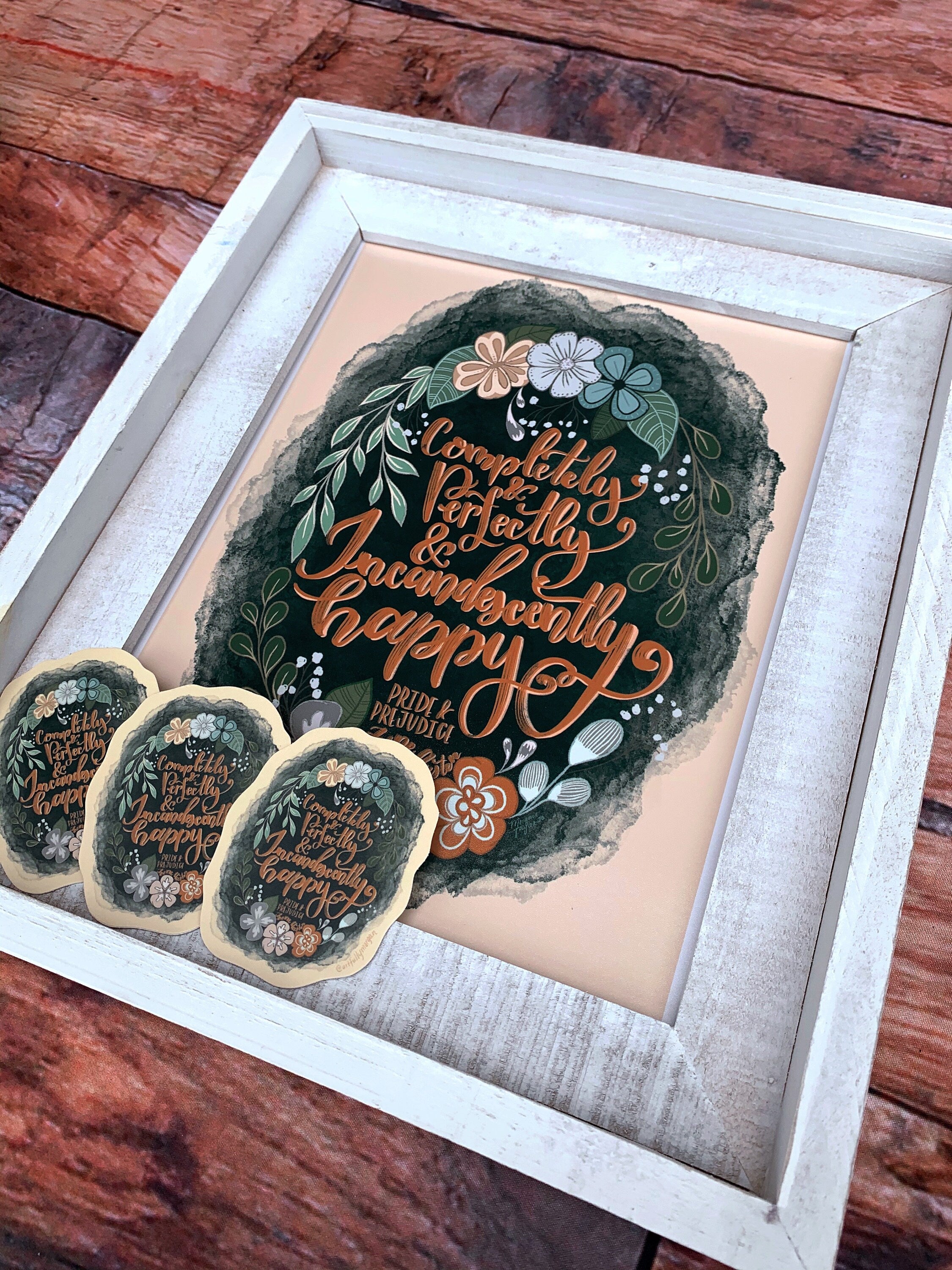 Pride & Prejudice Incandescently Art Print, Calligraphy Wall Art, Completely and Perfectly, and Incandescently Happy Quote Artwork