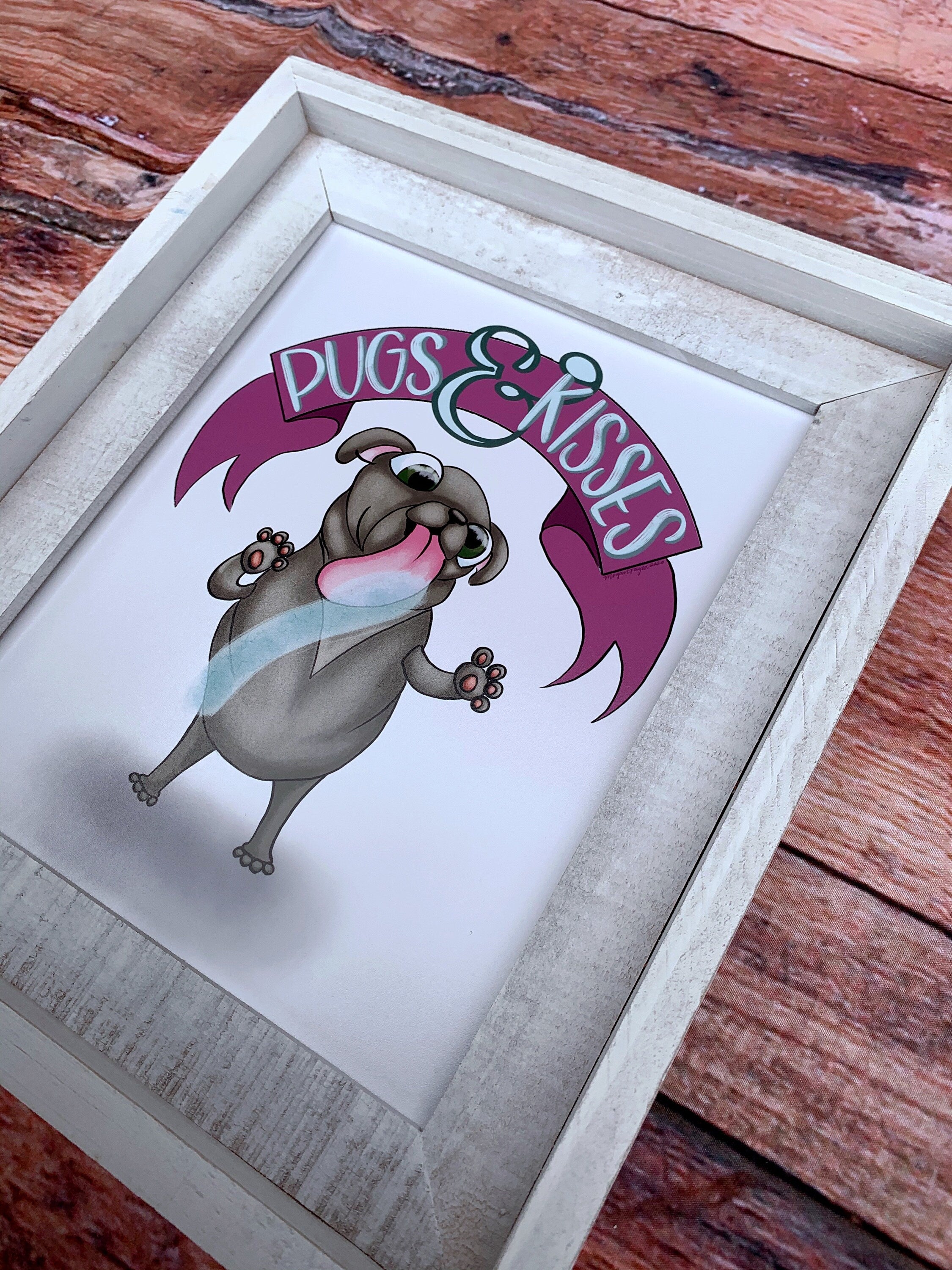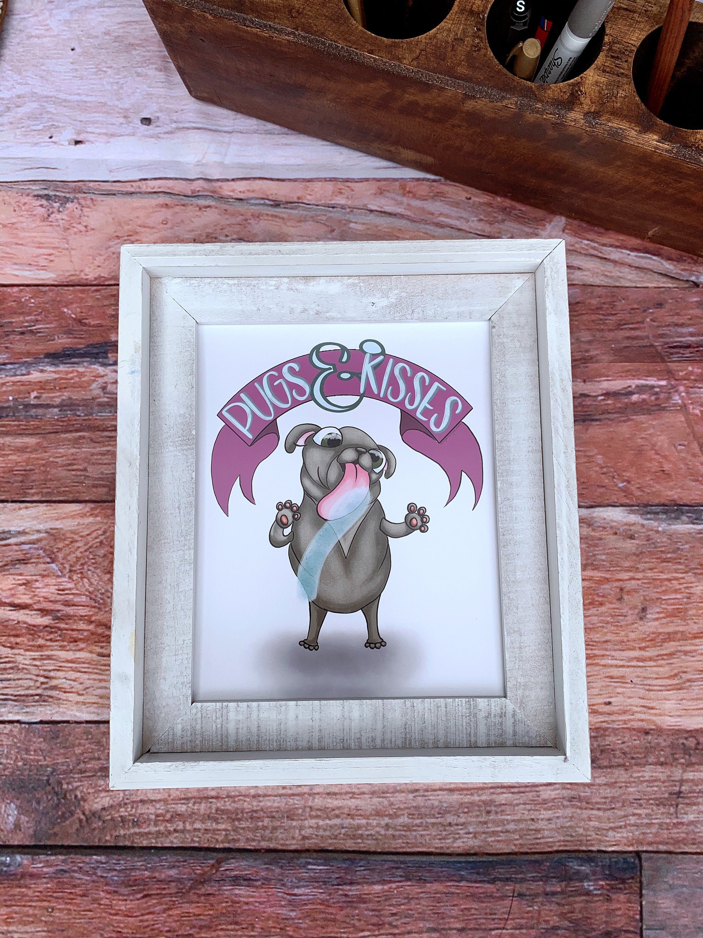Pugs & Kisses Art Print, Pug Artwork, Pug Pun Wall Decor