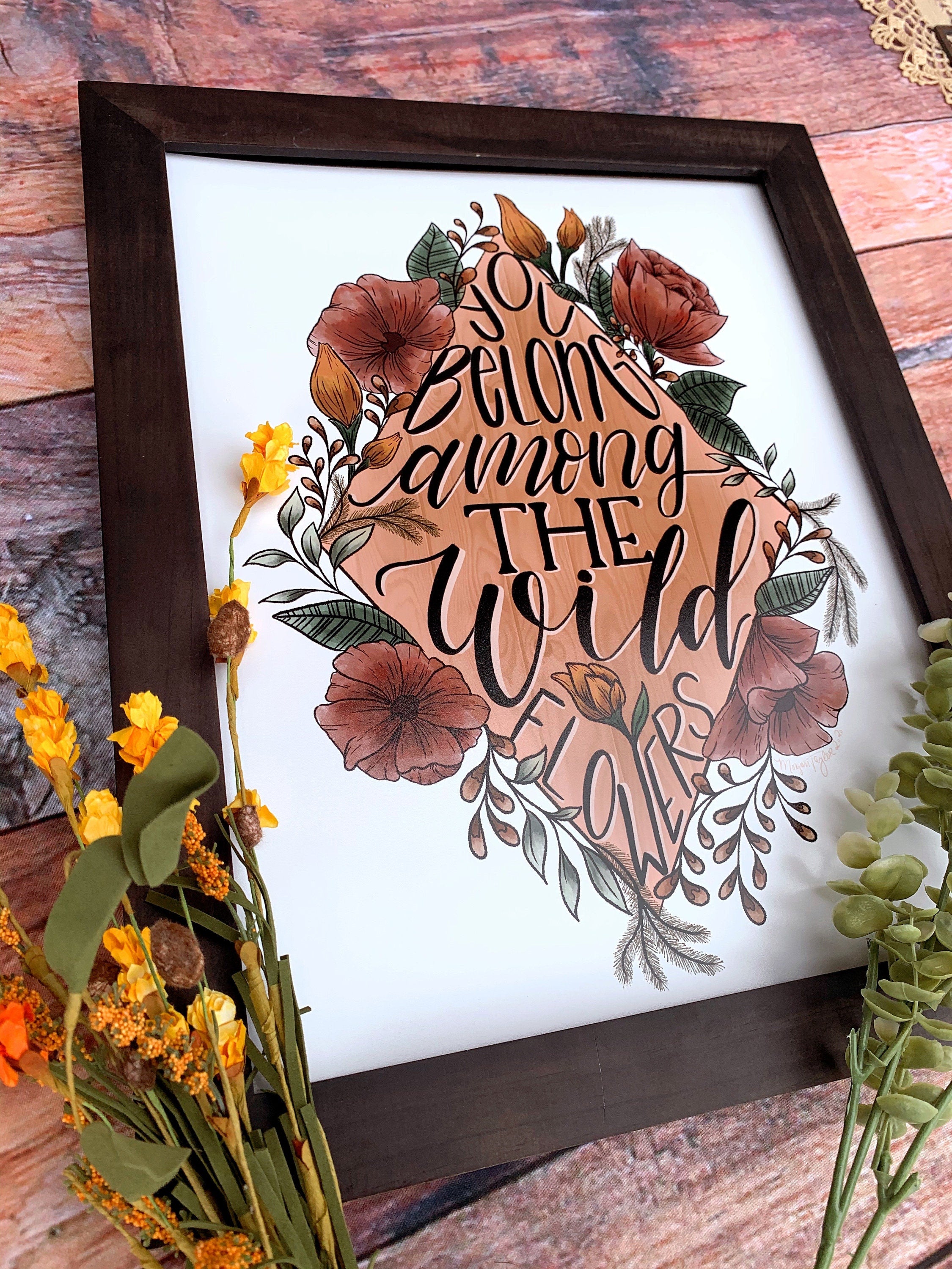 You Belong Among the Wild Flowers Art Print, Botanical Art, Floral Art Print, Calligraphy Wall Art