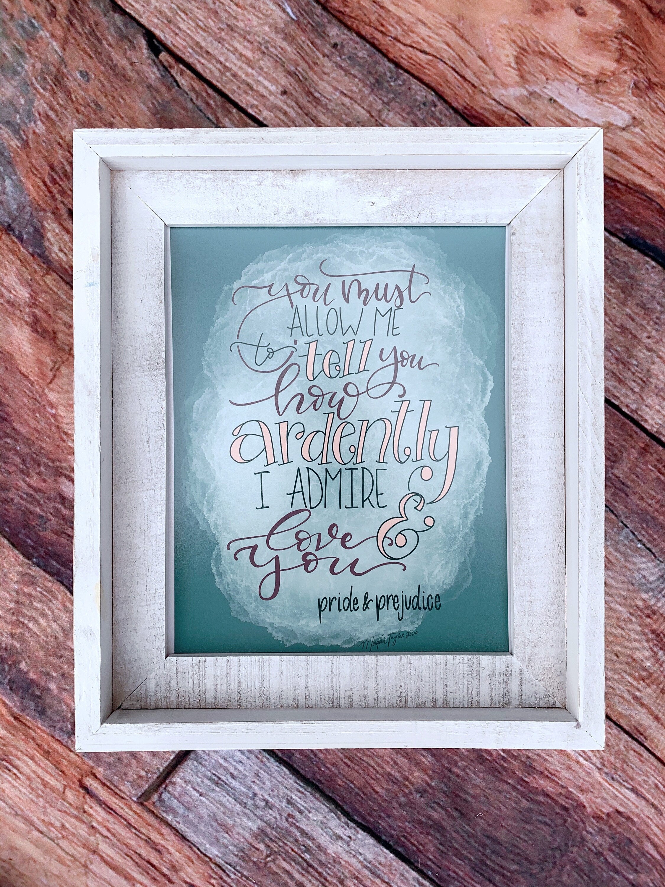 Pride & Prejudice Art Print, Calligraphy Word Art, Lettering Print, Lettering Wall Art