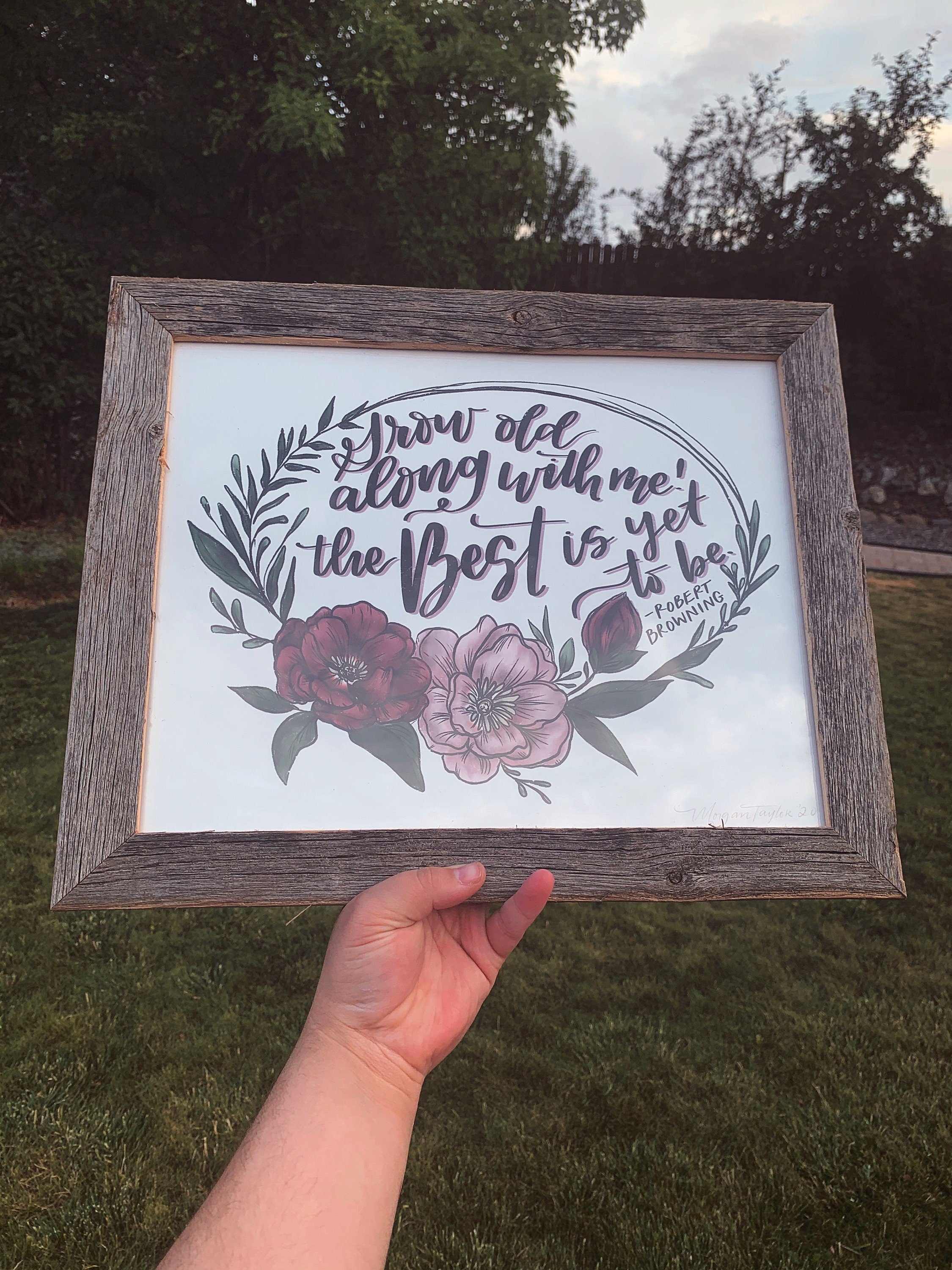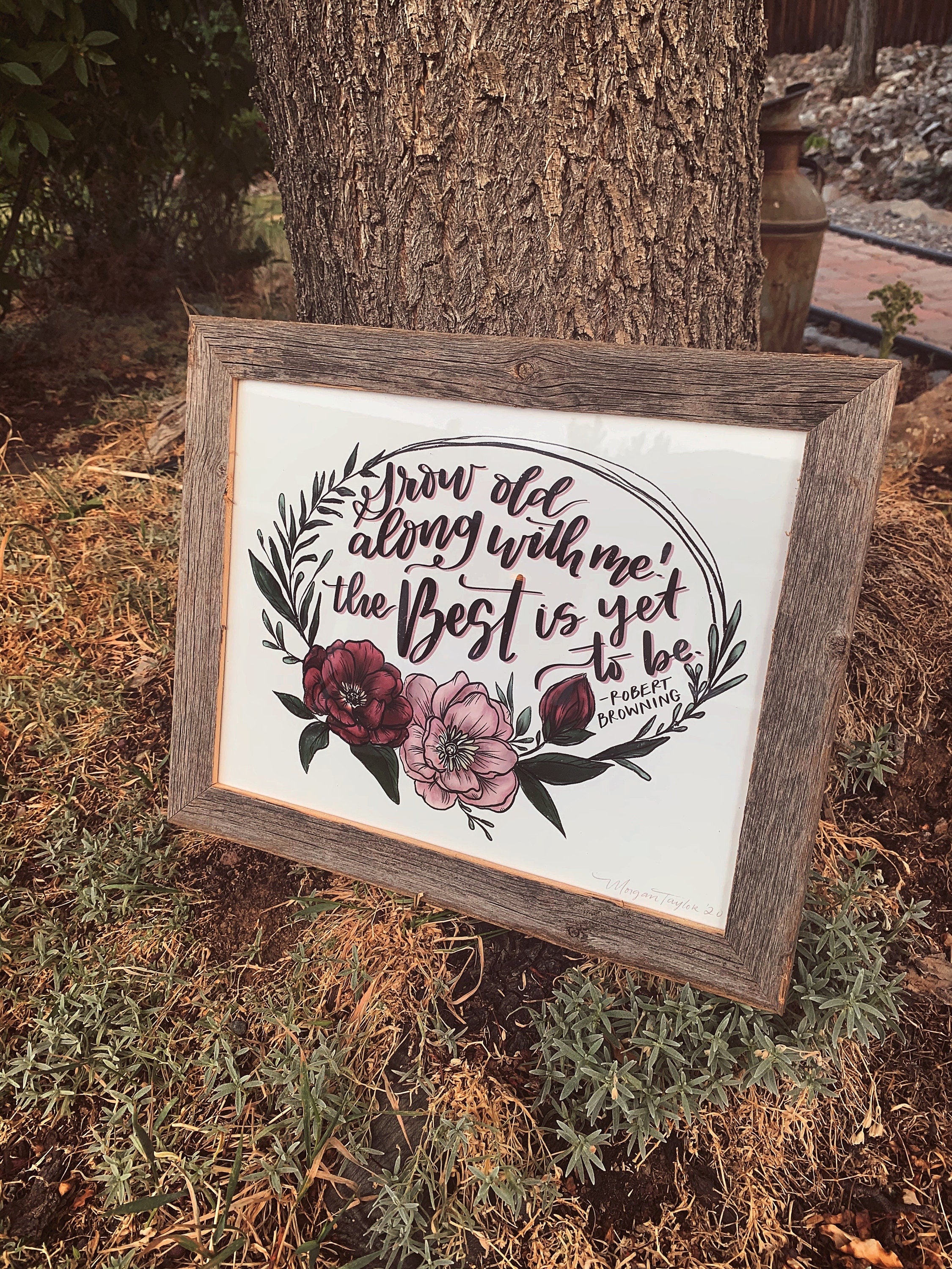Grow Old Along With Me Floral Print, Robert Browning Quote, Art Print