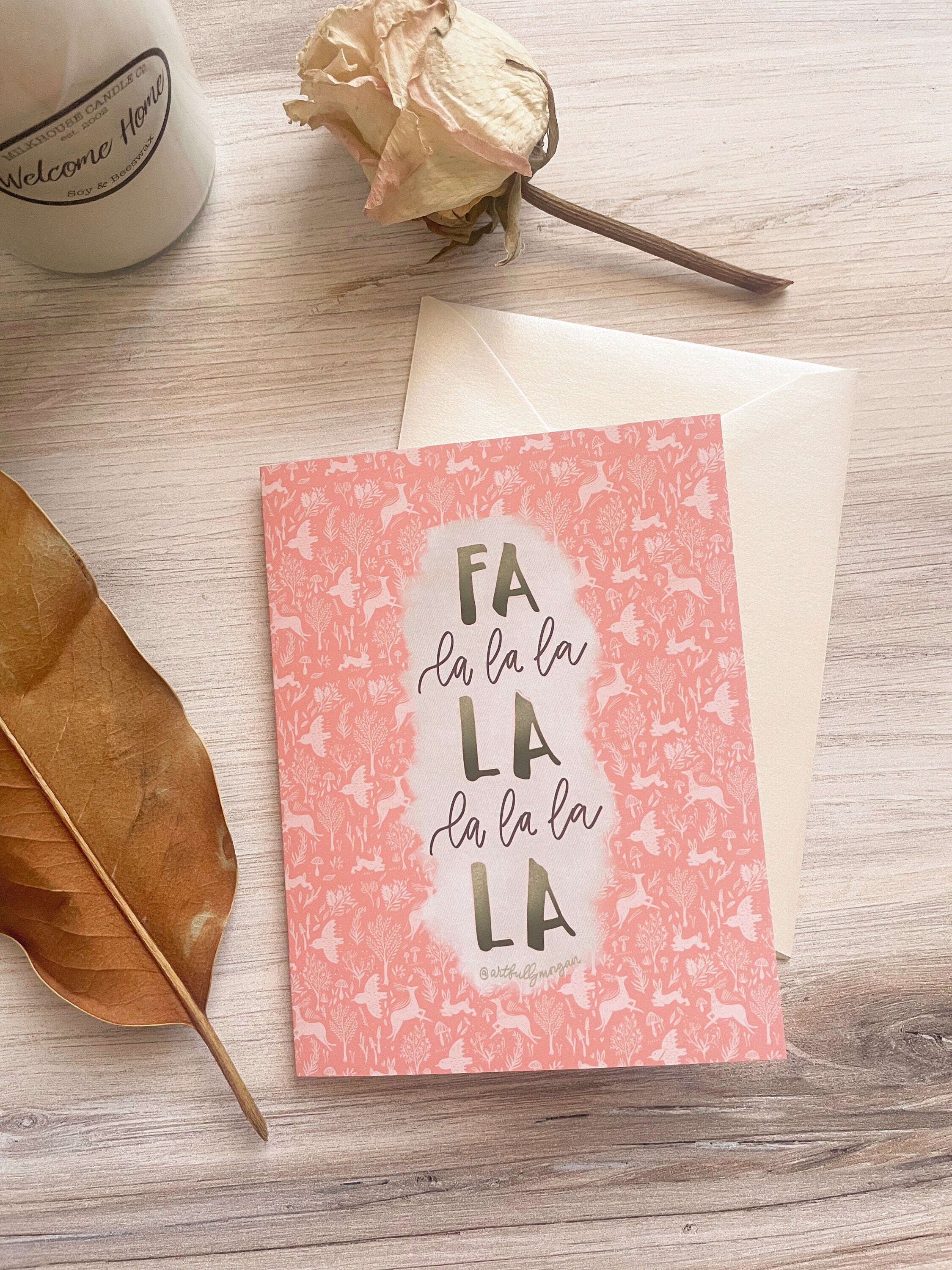 --This listing is for a single greeting card with the "Falala" design. Let this card jingle all the way to your loved ones through the holiday season!