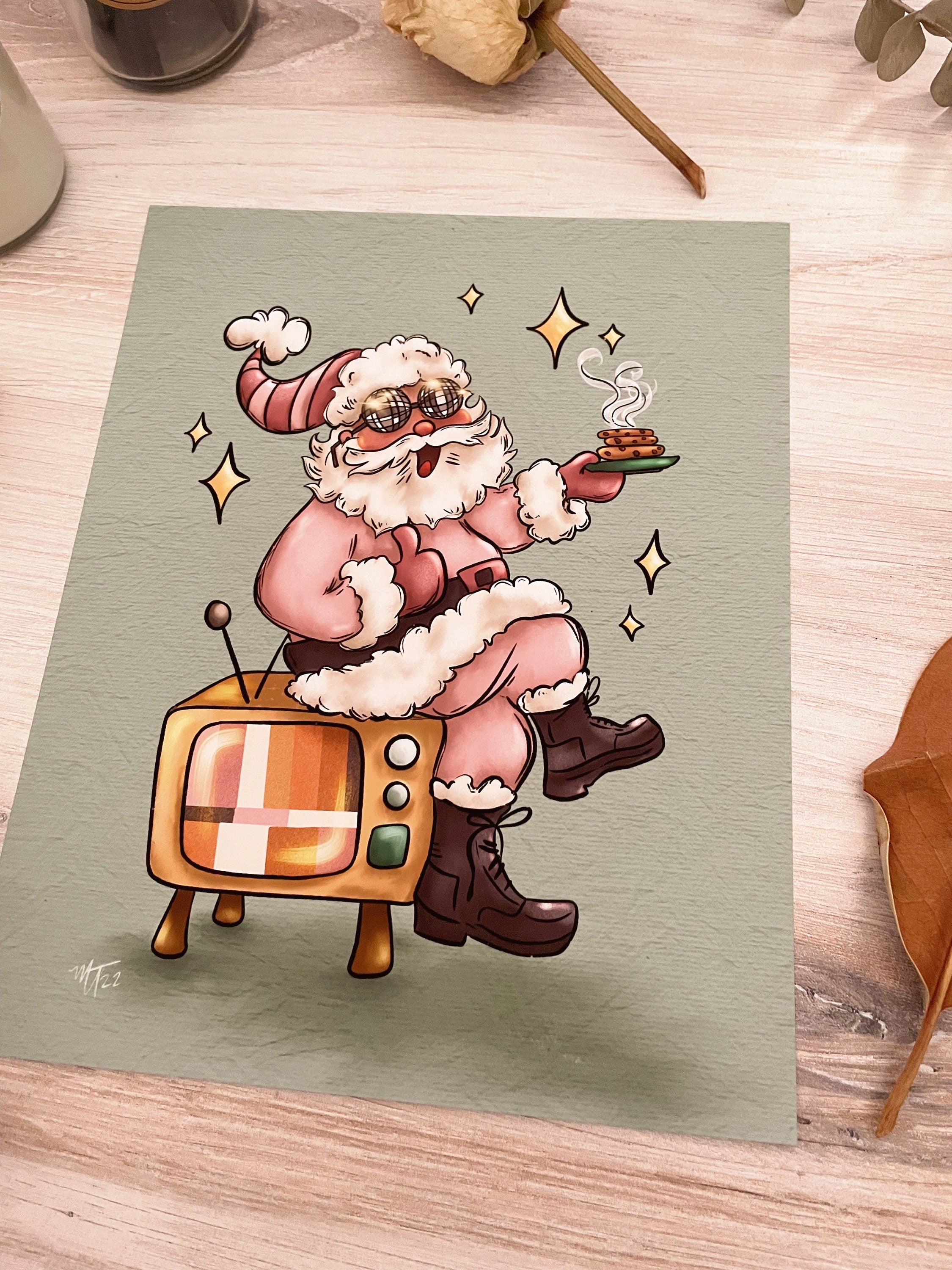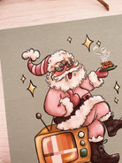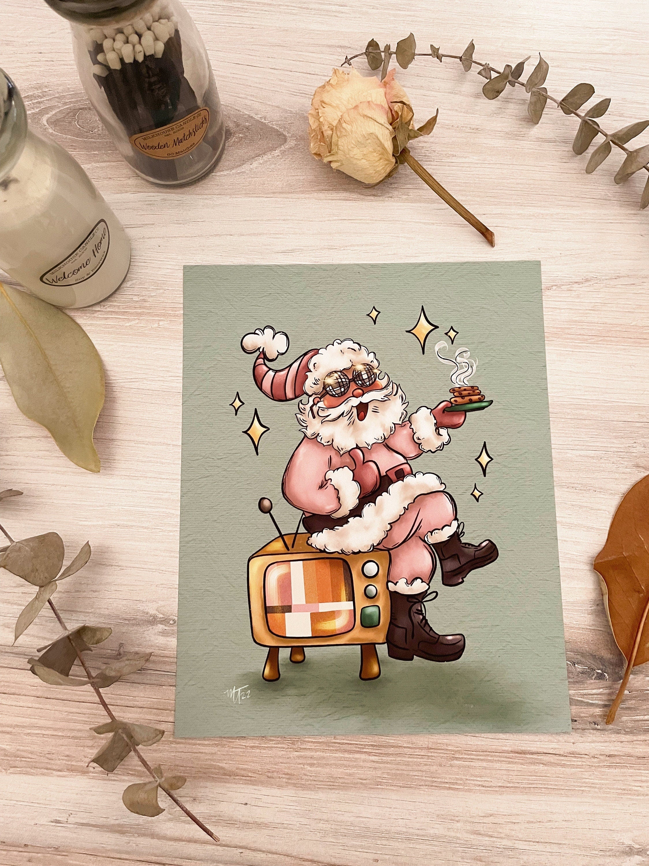 Groovy Santa Art Print, 70s Vibe Art, Holiday Art
