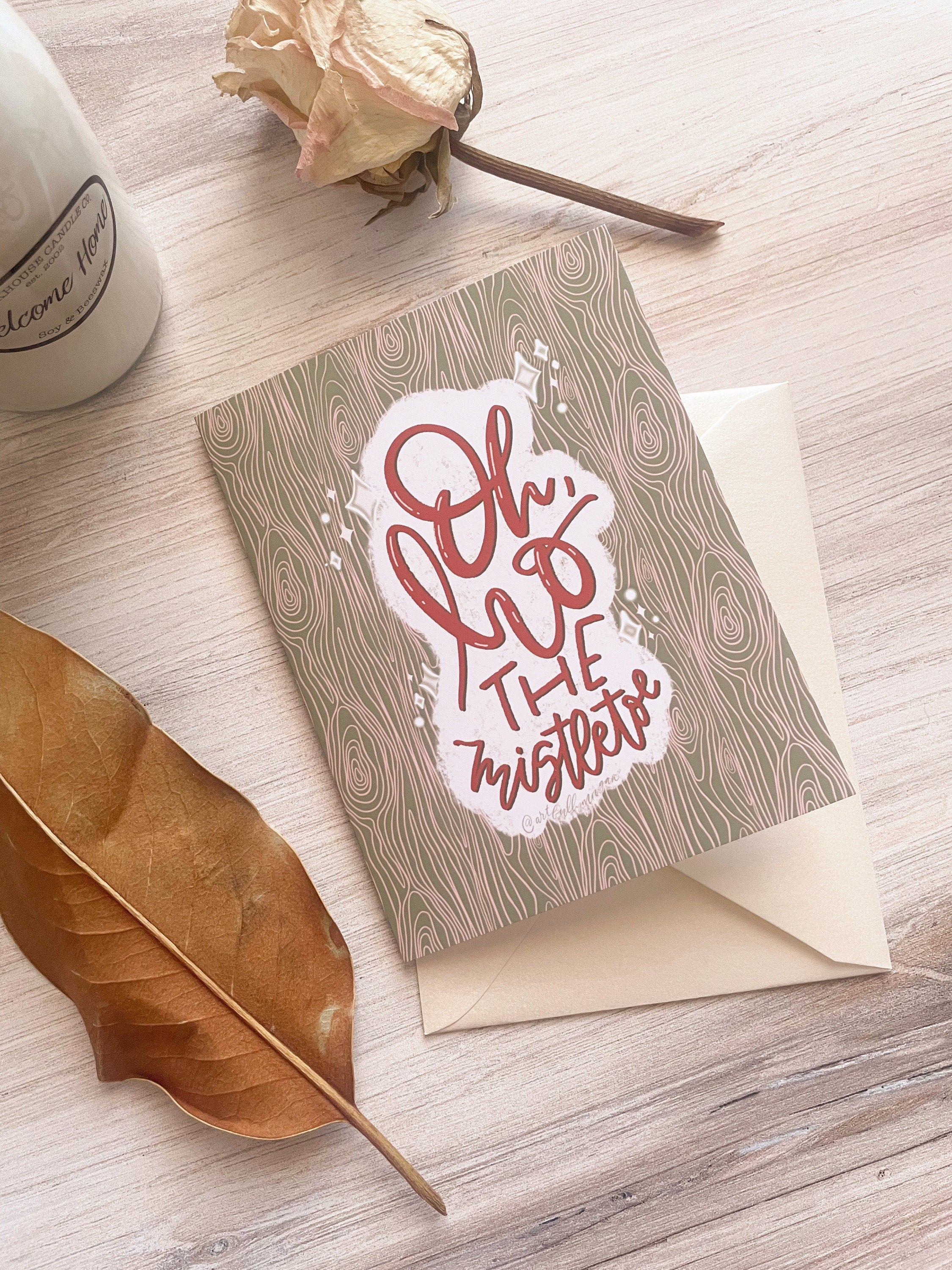 --This listing is for a single greeting card with the "Oh Ho the Mistletoe" design. Let this card jingle all the way to your loved ones through the holiday season!