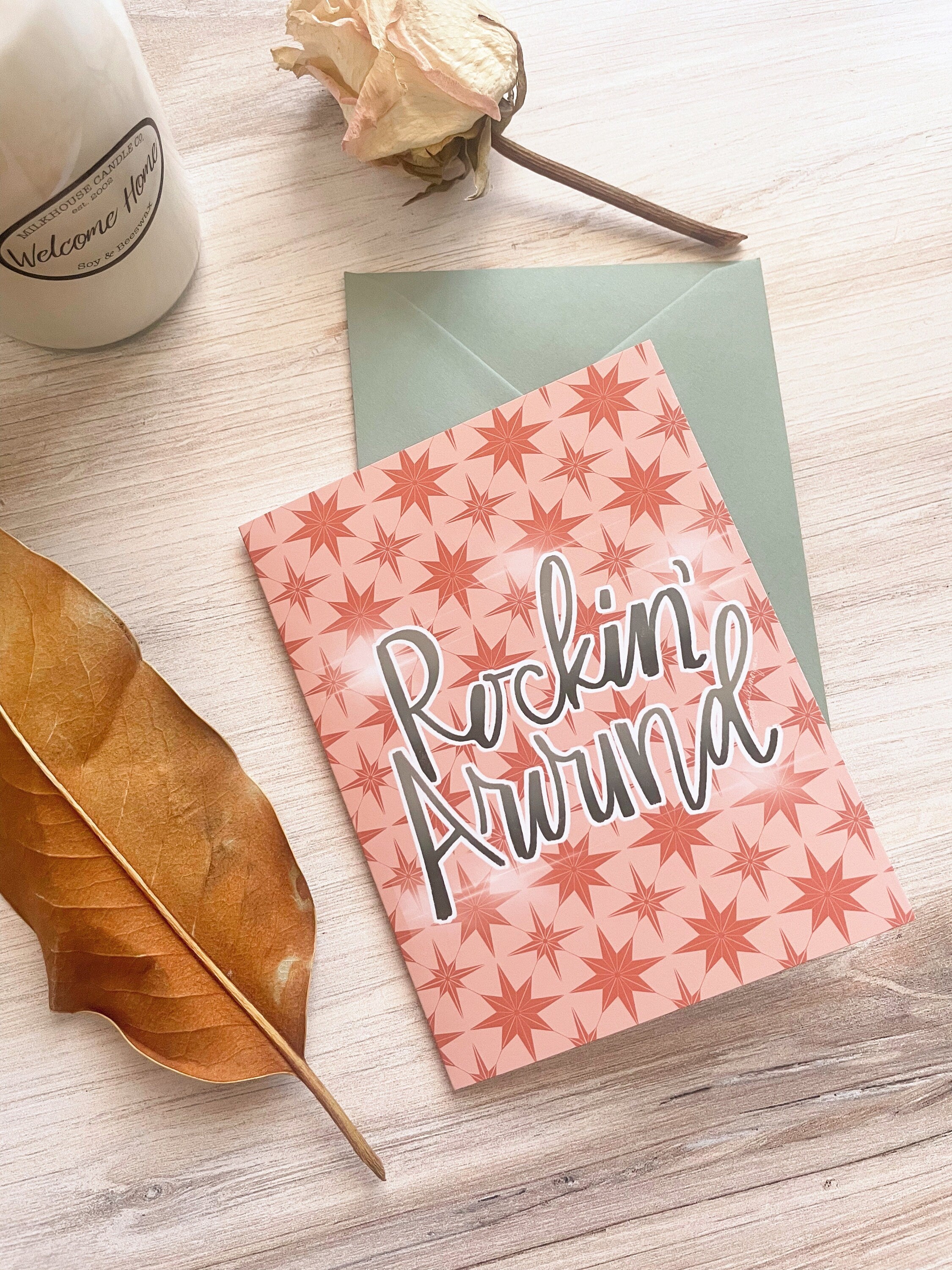 --This listing is for a single greeting card with the "Rockin' Around" design. Let this card jingle all the way to your loved ones through the holiday season!