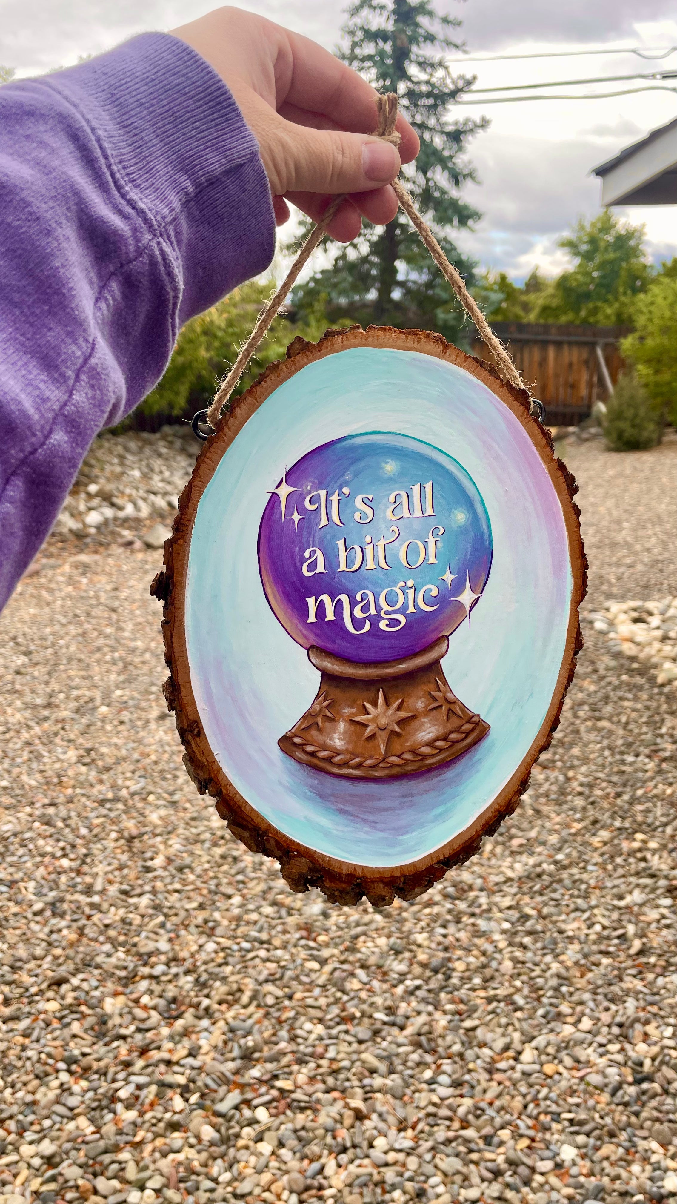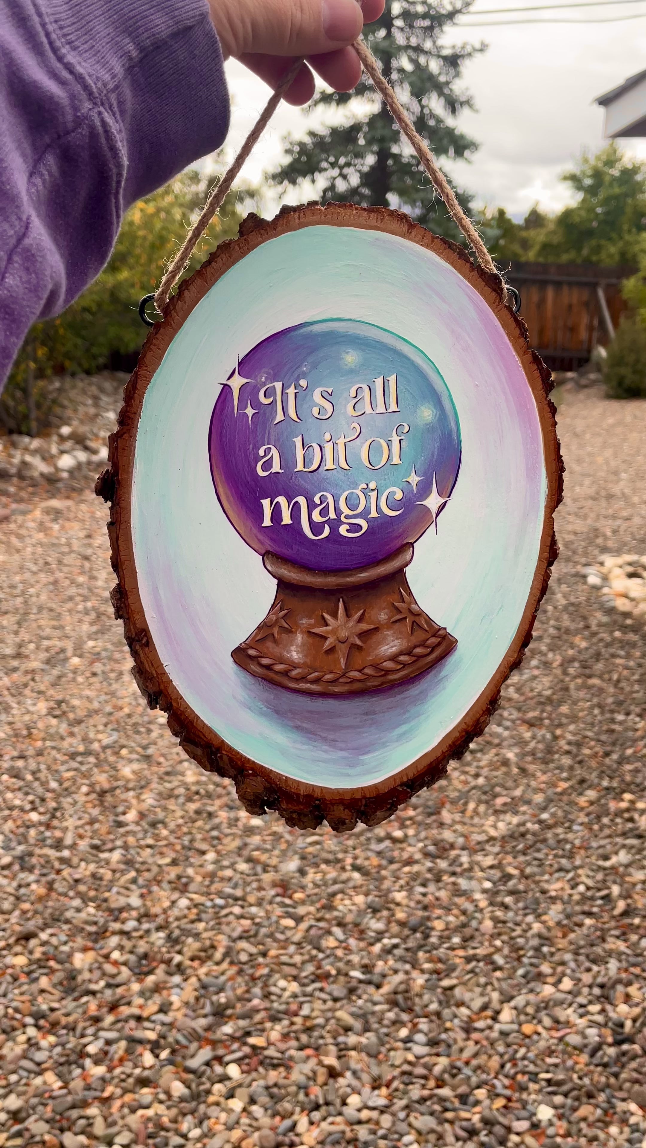 It's All a Bit of Magic Hand Painted Wood Slice Art, Crystal Ball Witchy Art