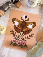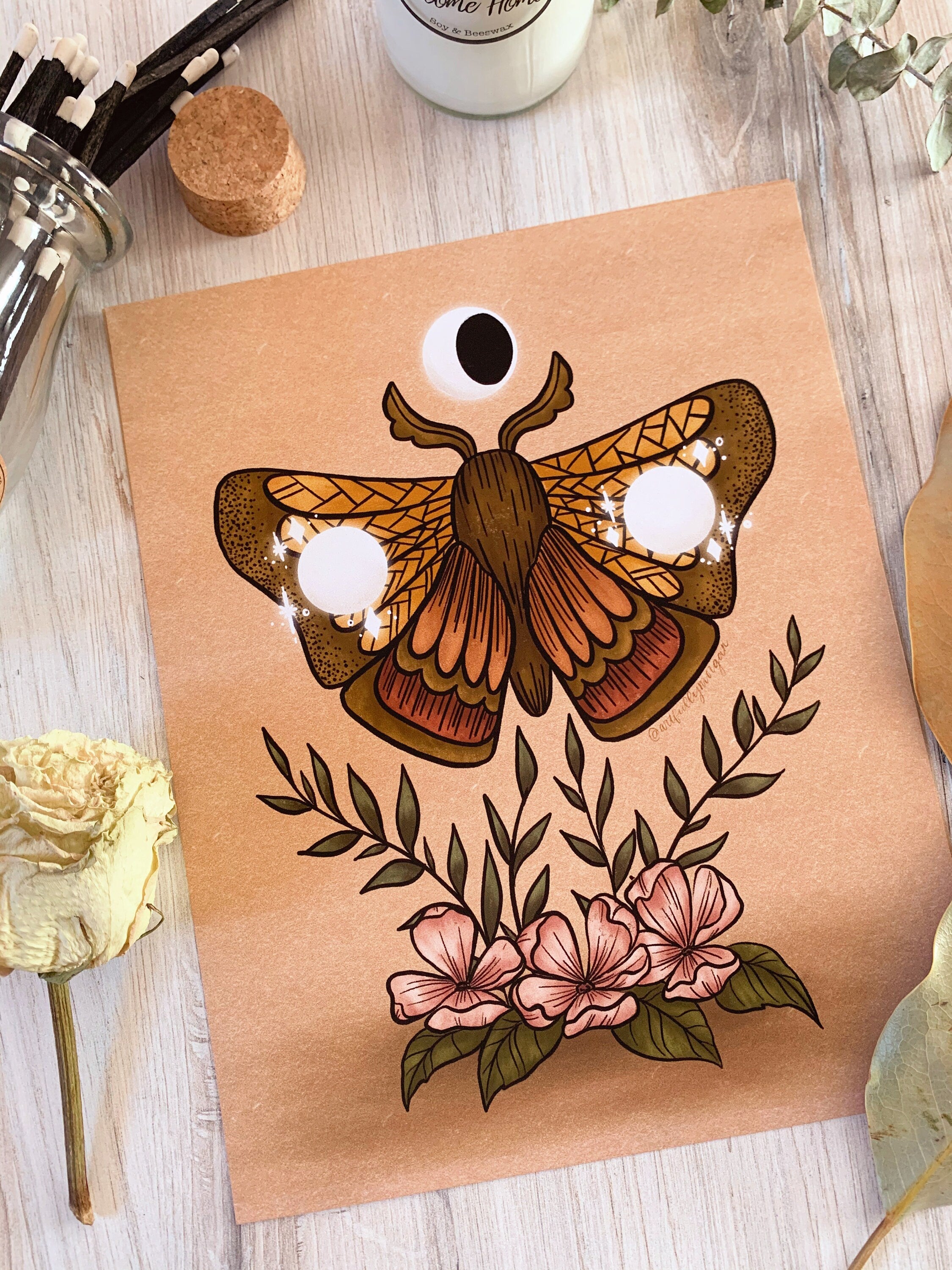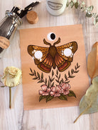 Moon Moth Art Print, Floral Moth Print, Celestial Moon Art