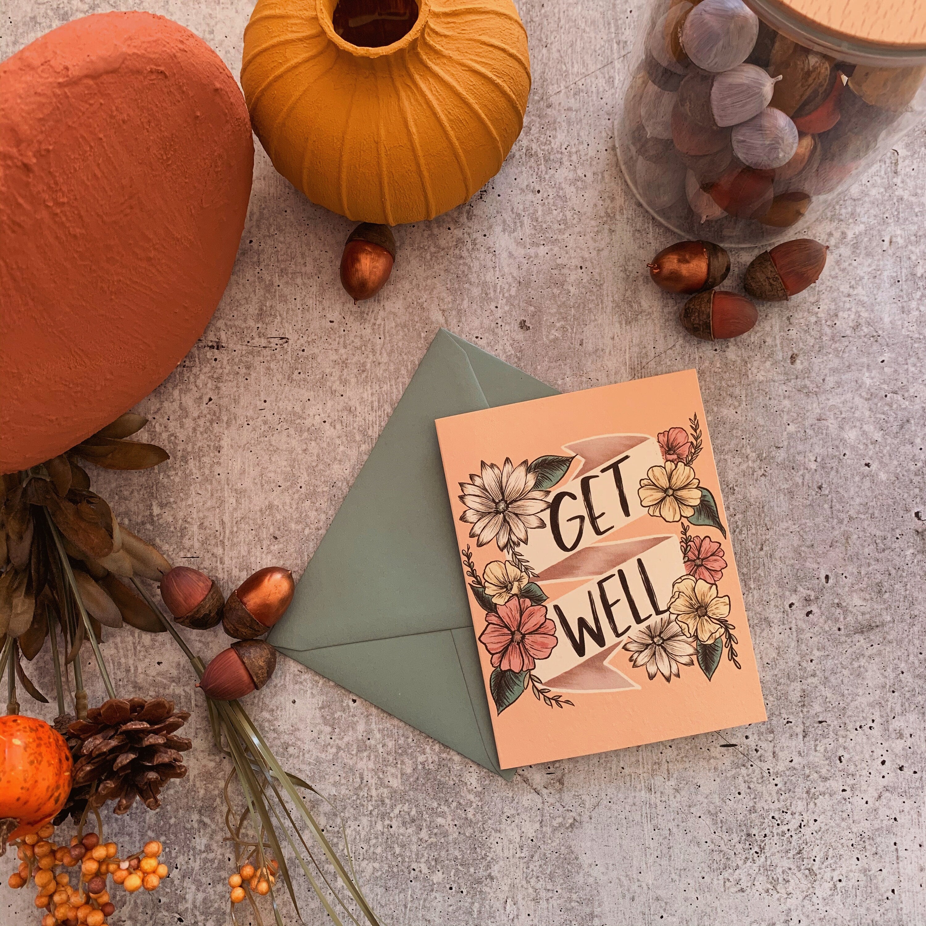 Get Well Floral Greeting Card, A2 Card with Envelope