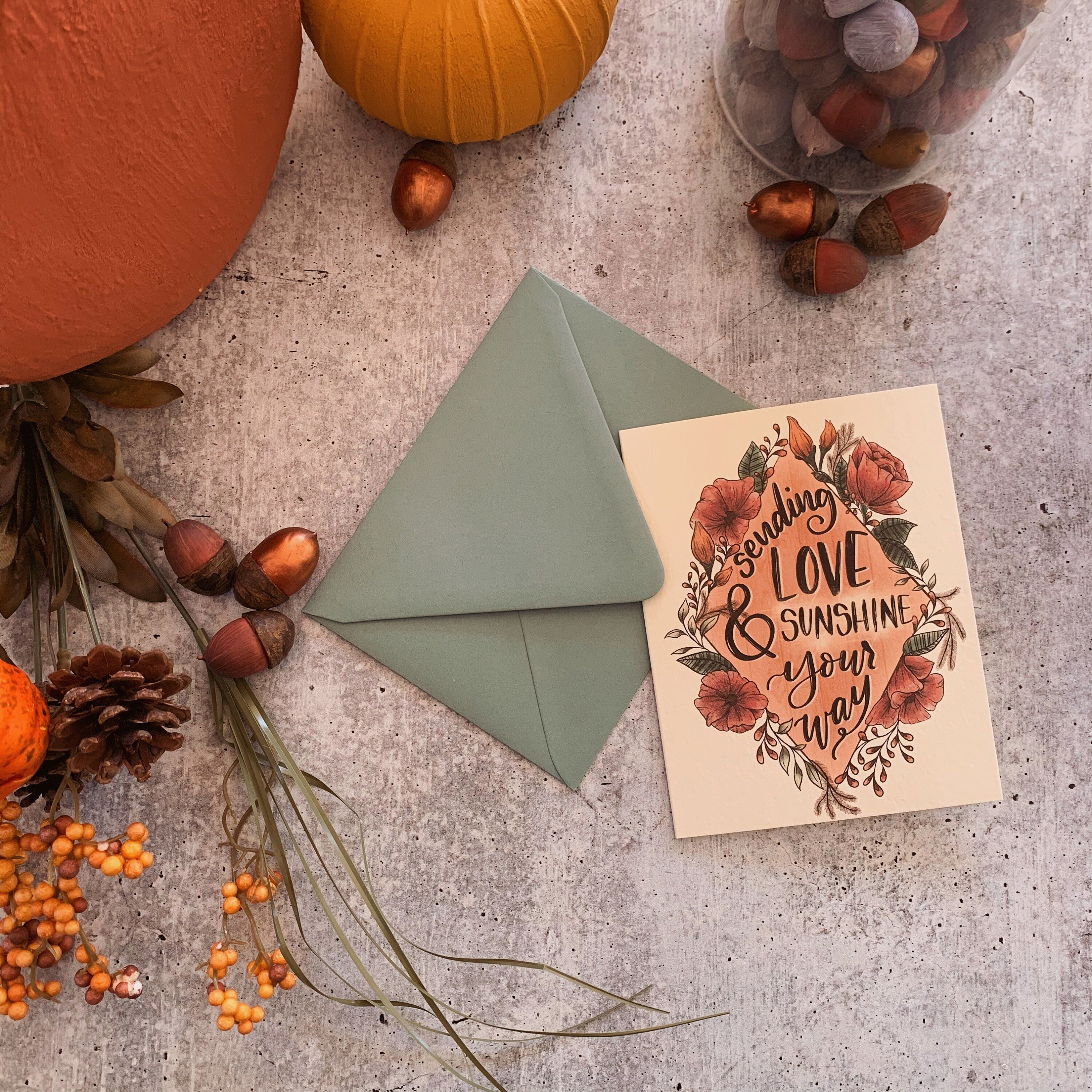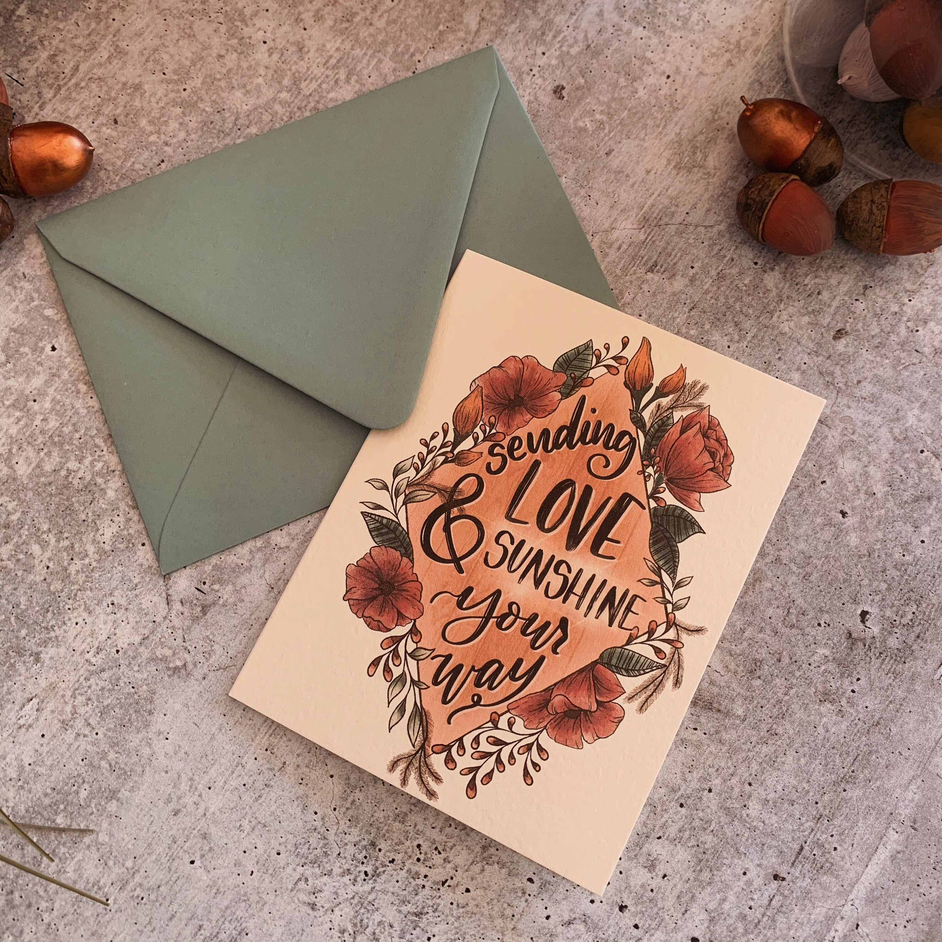 Sending Love and Sunshine Your Way Greeting Card, A2 Card with envelope