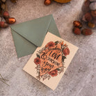 --This item was created by hand using Procreate and then printed onto a bright white, high-quality, ultra-matte 230 GSM paper. The design is Inkjet printed and hand-cut & folded to size. The envelope is a matte eucalyptus paper color. The card is blank on the inside and is A2 in size.