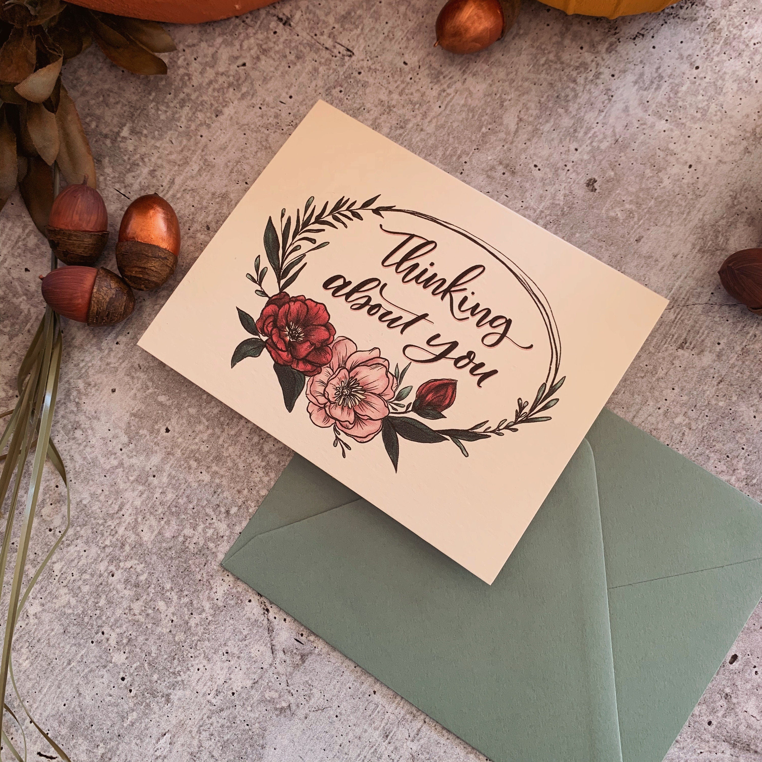 Thinking About You Floral Greeting Card, A2 Card with Envelope