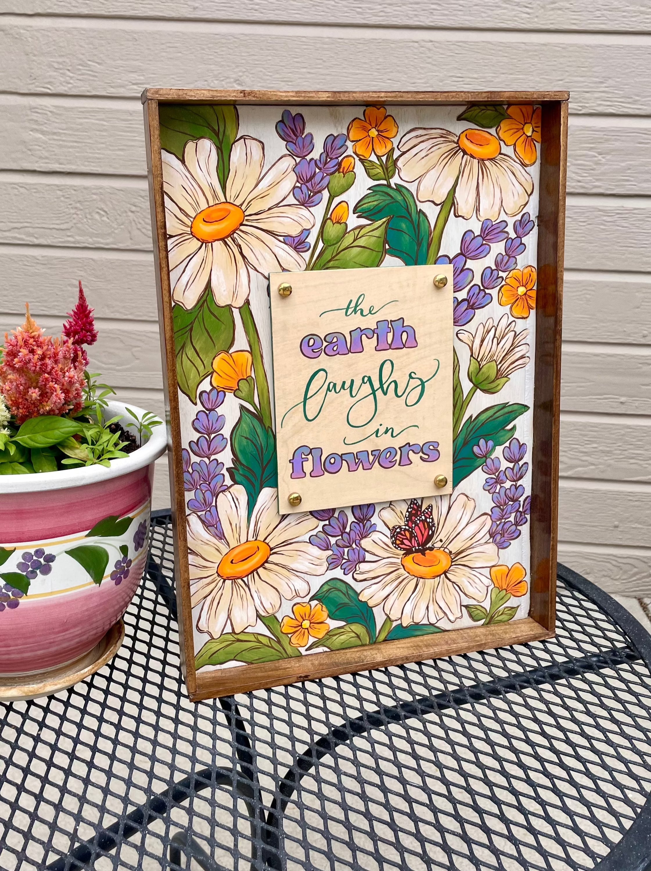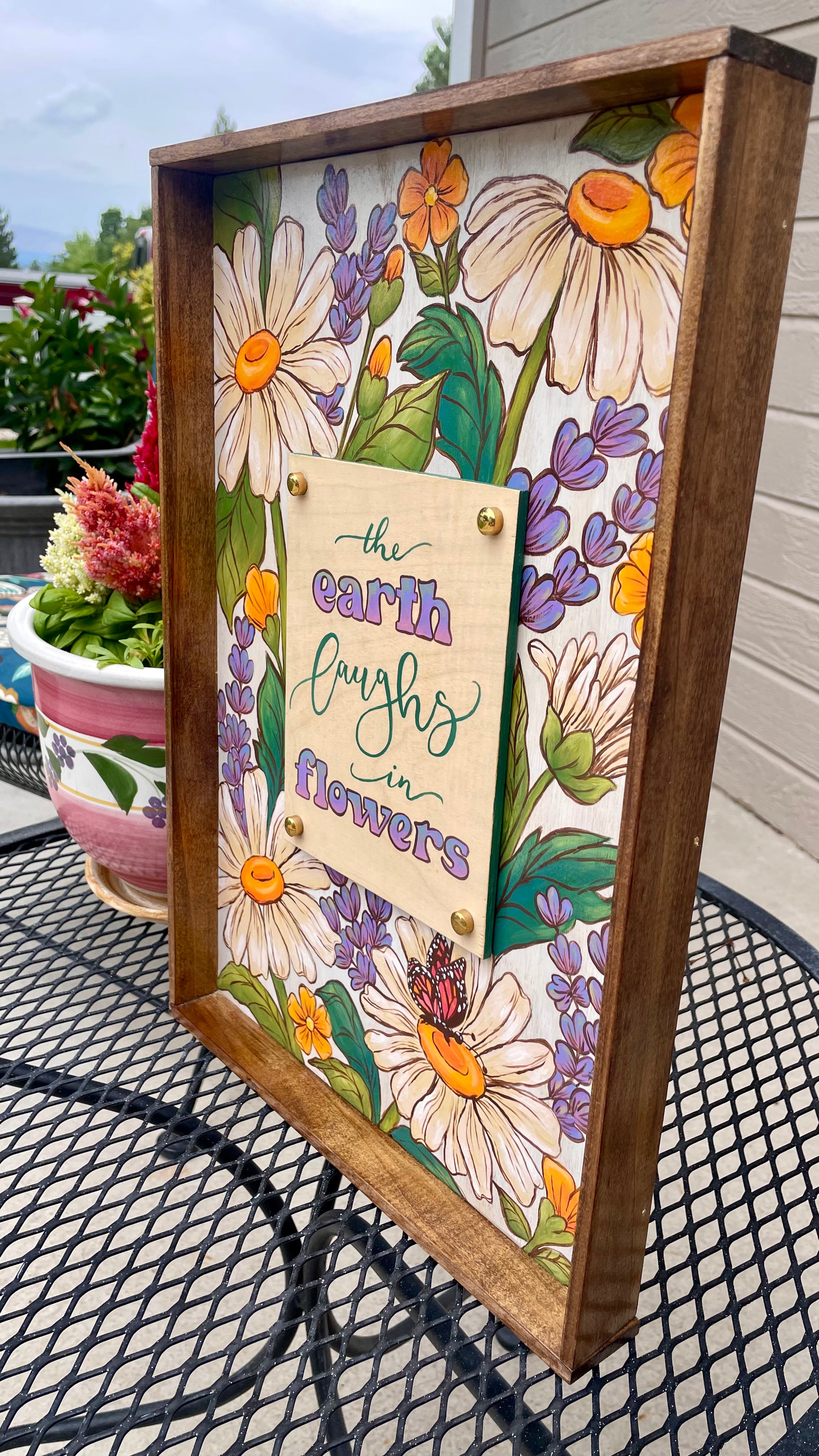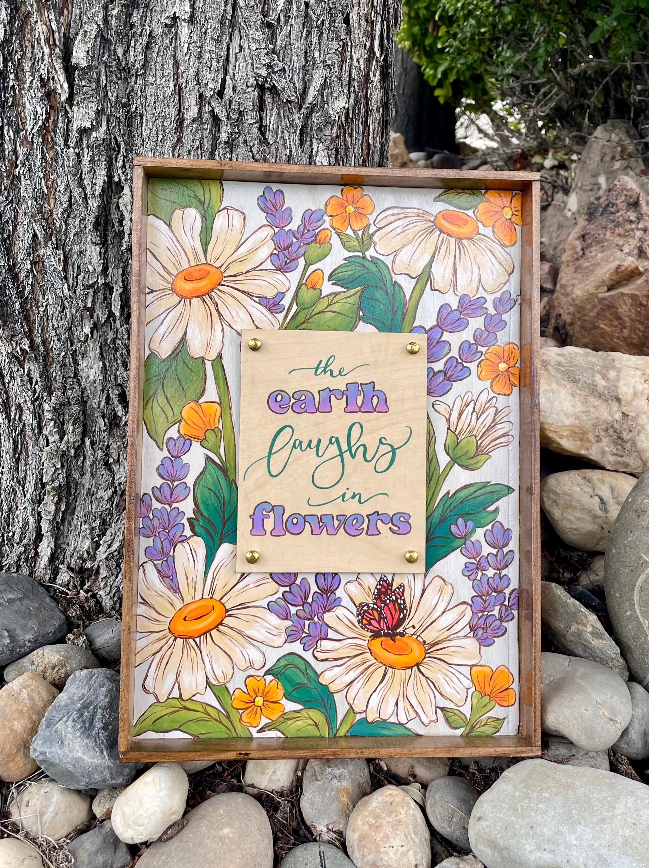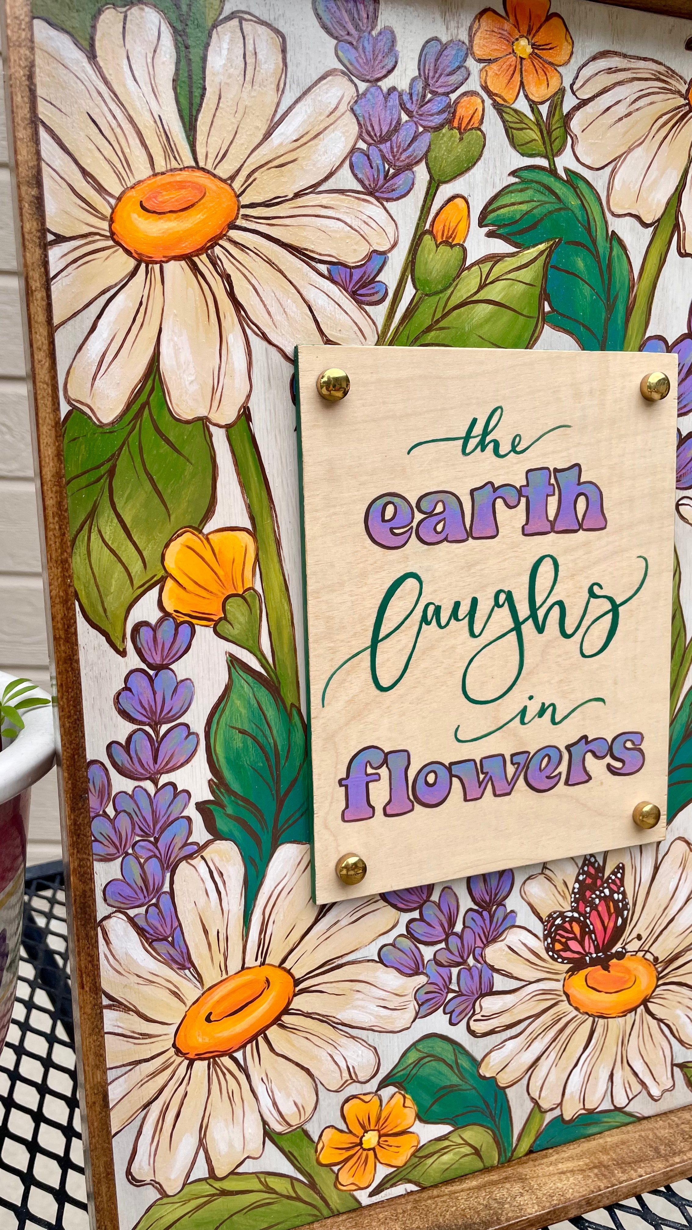 The Earth Laughs in Flowers Hand Painted Wooden Sign, Floral and Botanical Painting
