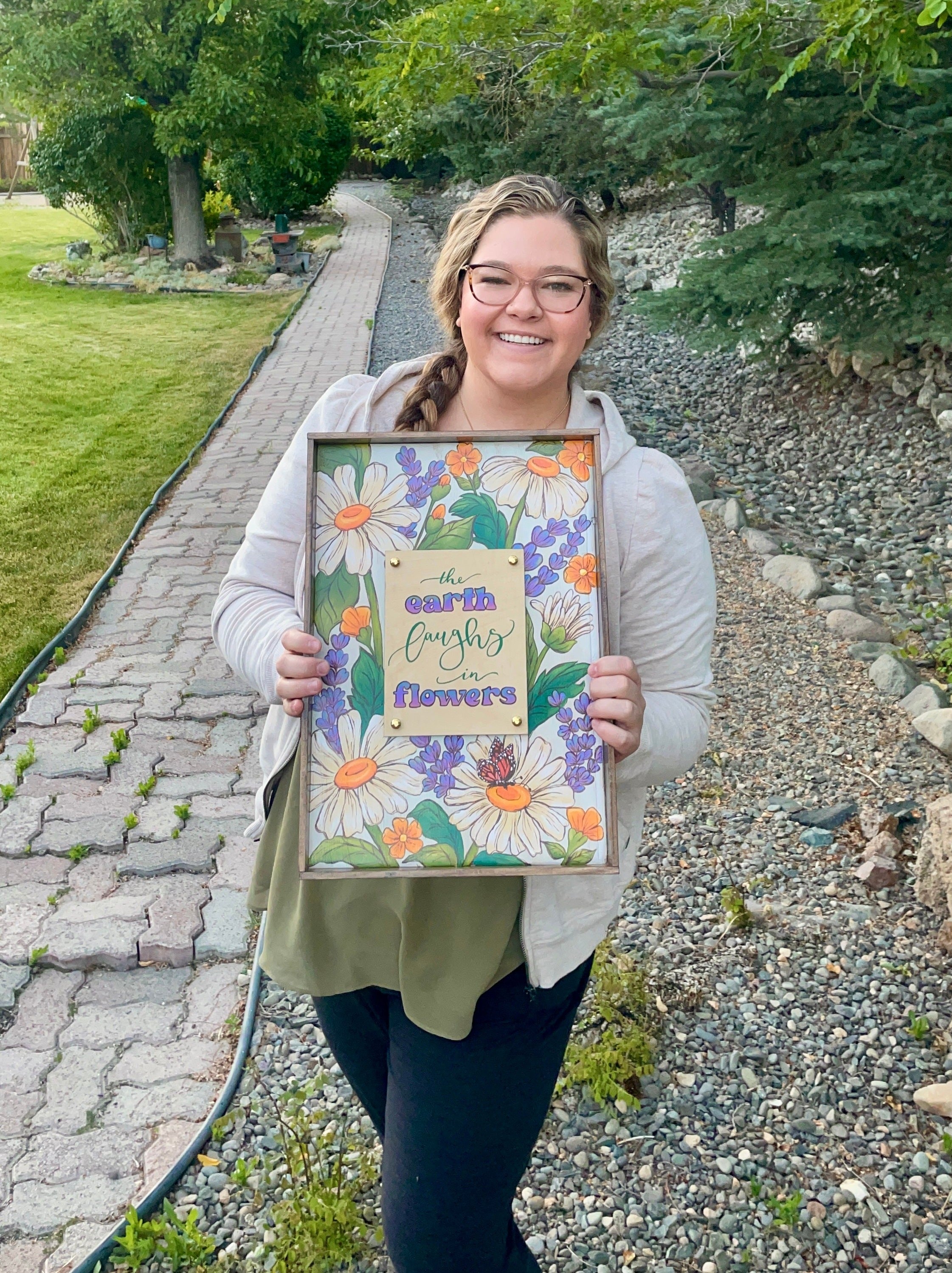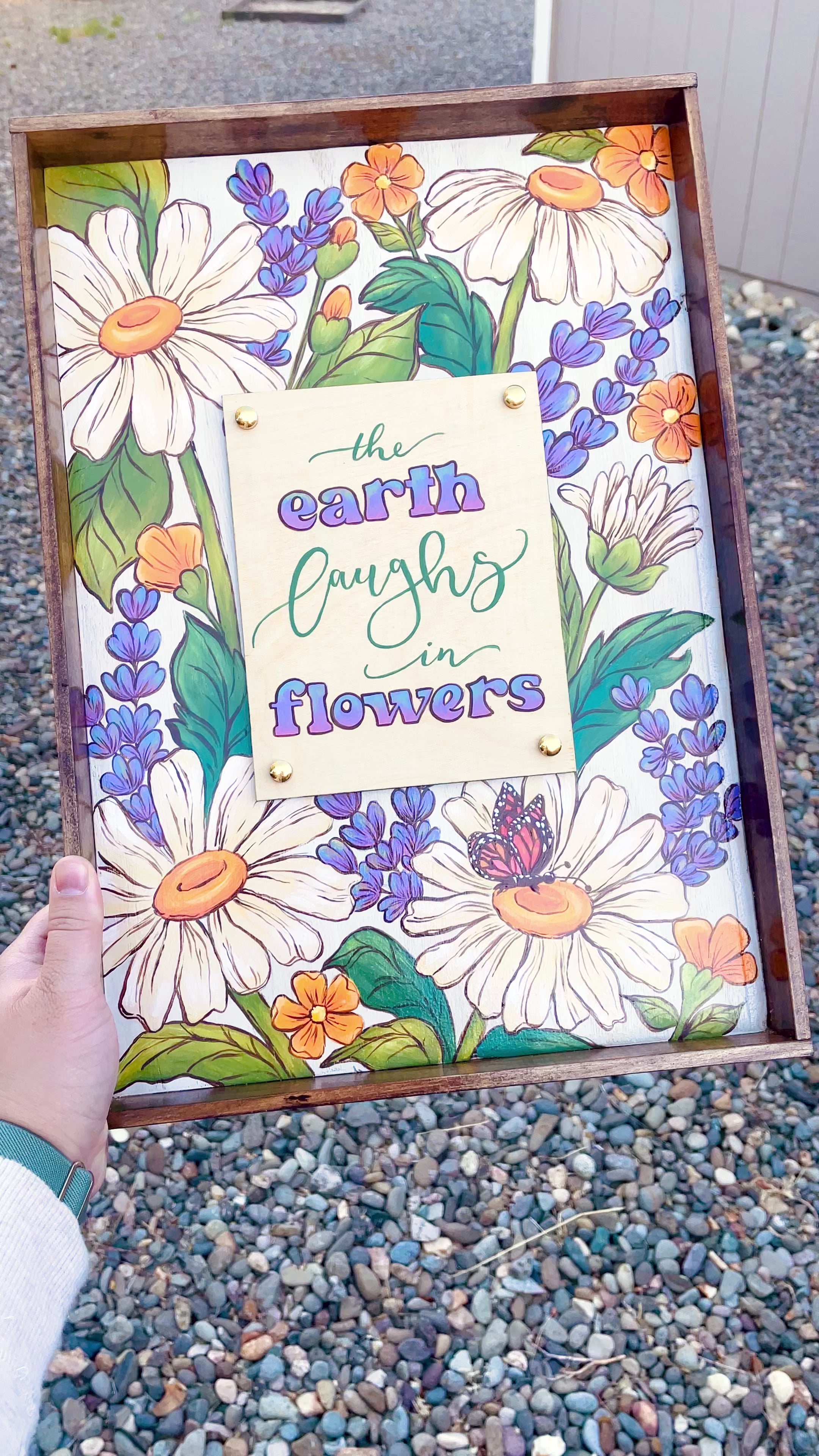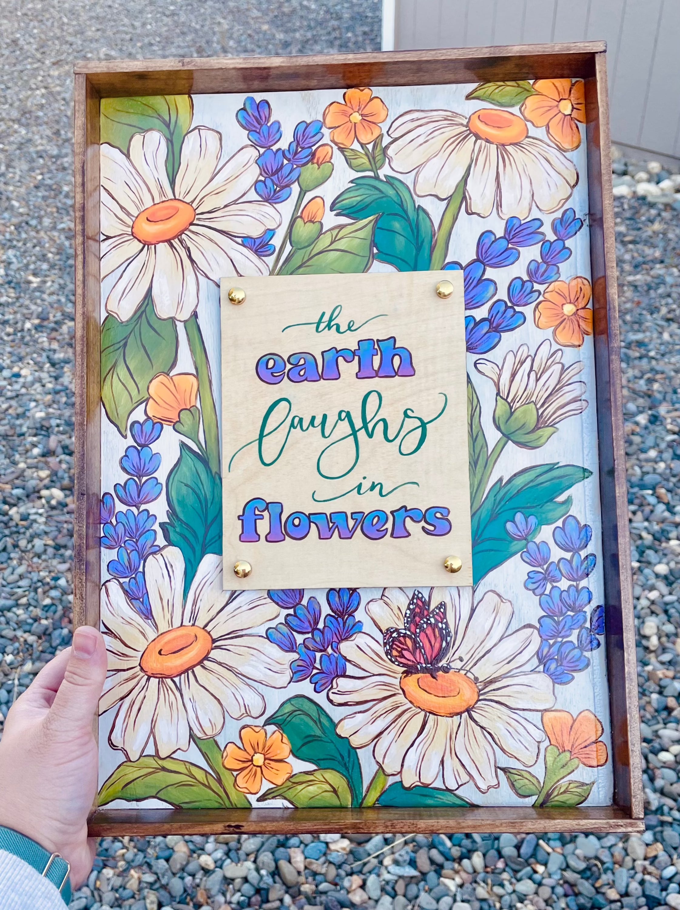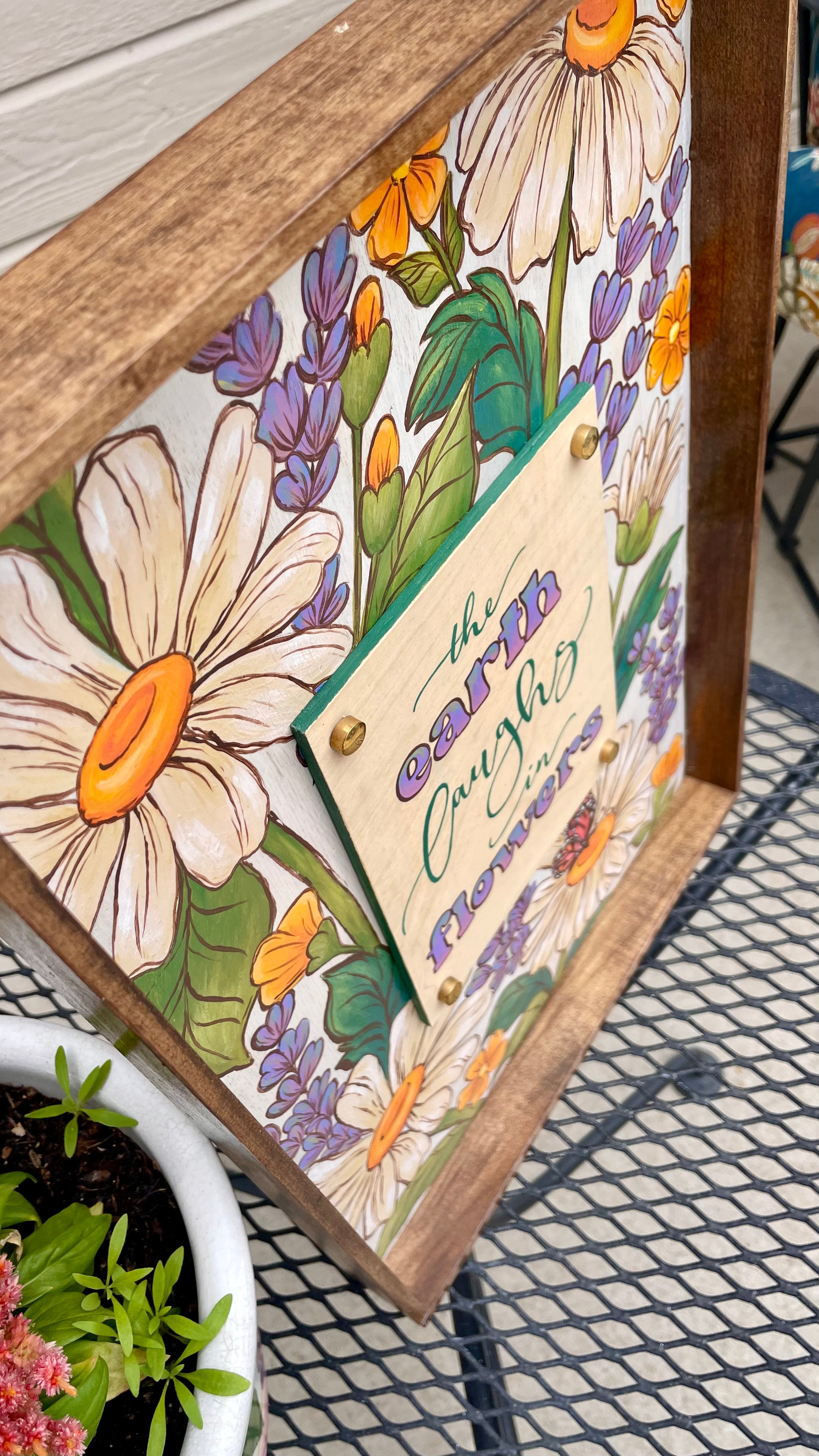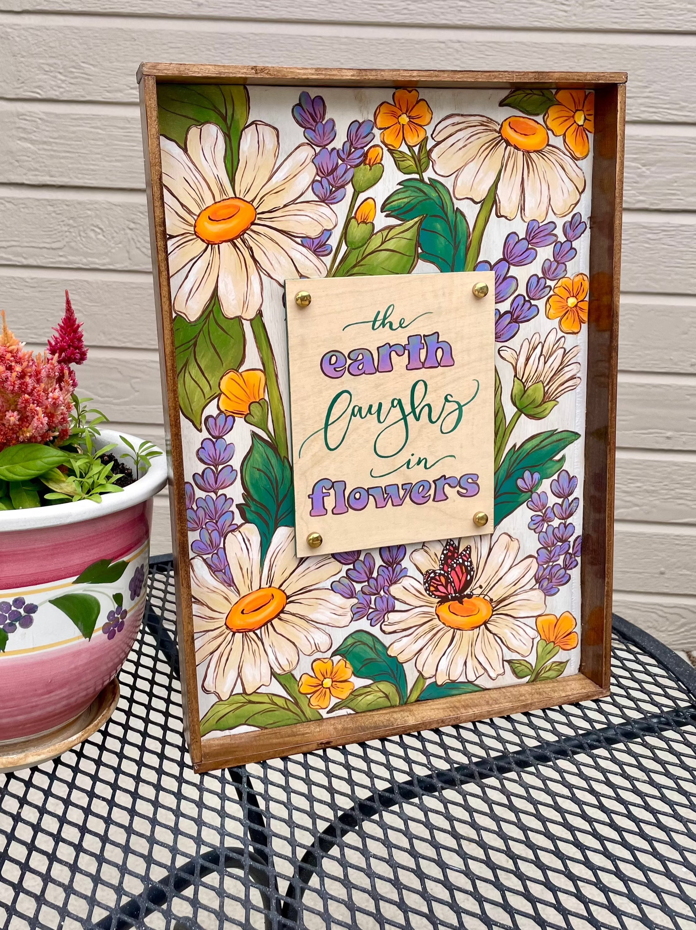 The Earth Laughs in Flowers Hand Painted Wooden Sign, Floral and Botanical Painting