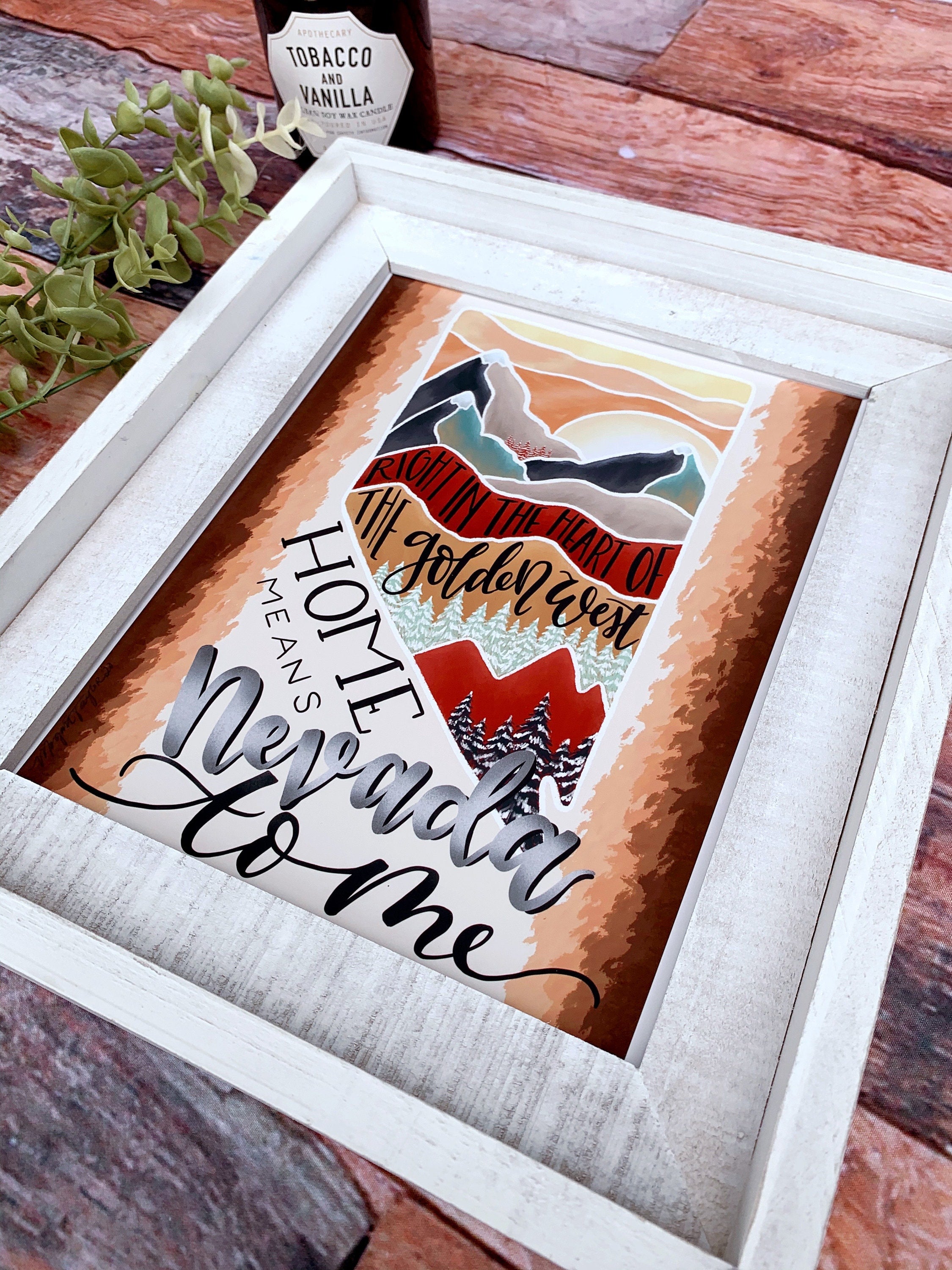 --This listing is for one 8x10 or 11x14 "Golden West" state of Nevada art print. Does home mean Nevada to you too? I think this unique piece is just right for ya if it does!