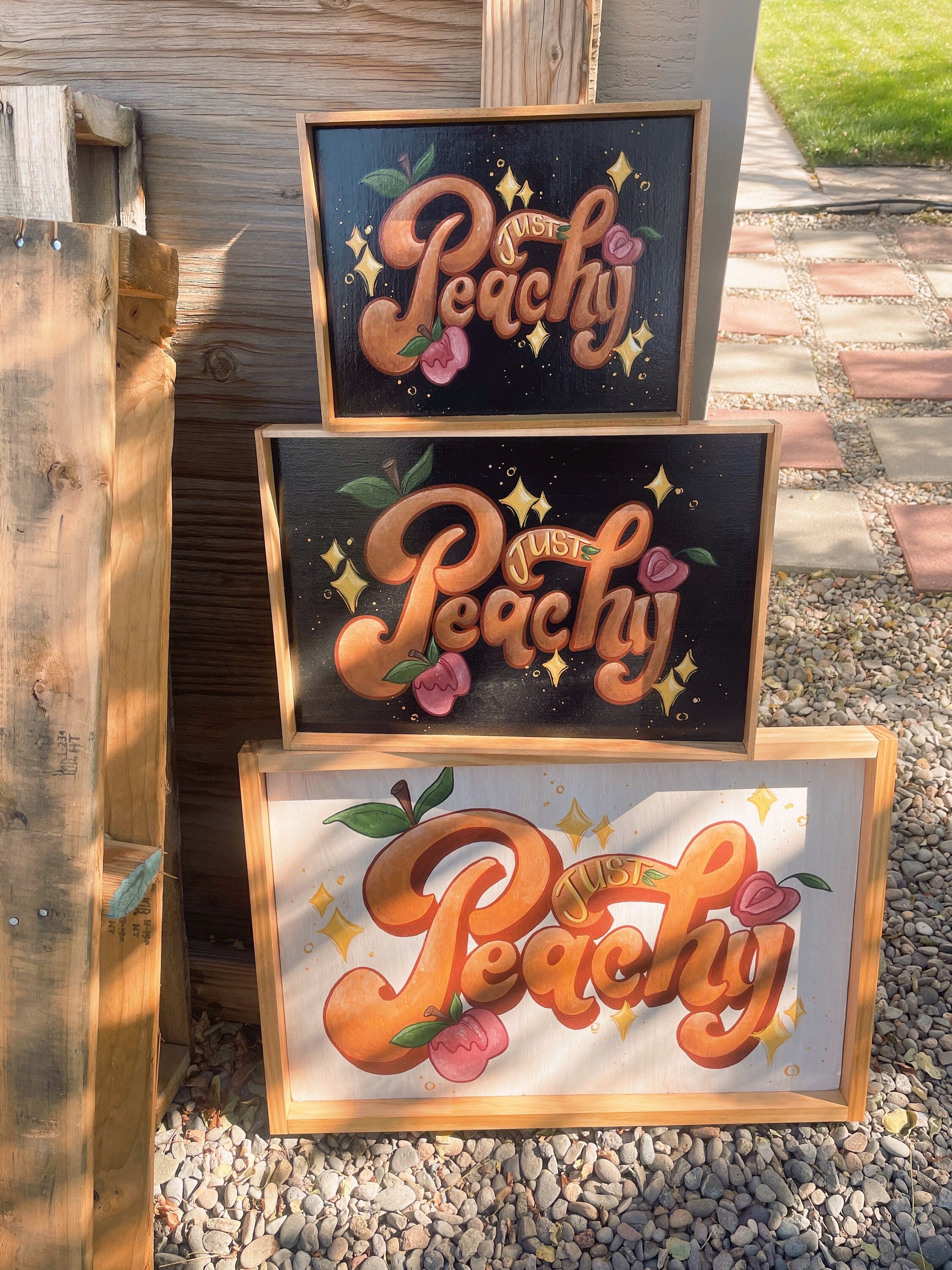 This listing is for one of the three size options for the Just Peachy Hand-Painted wooden signs.