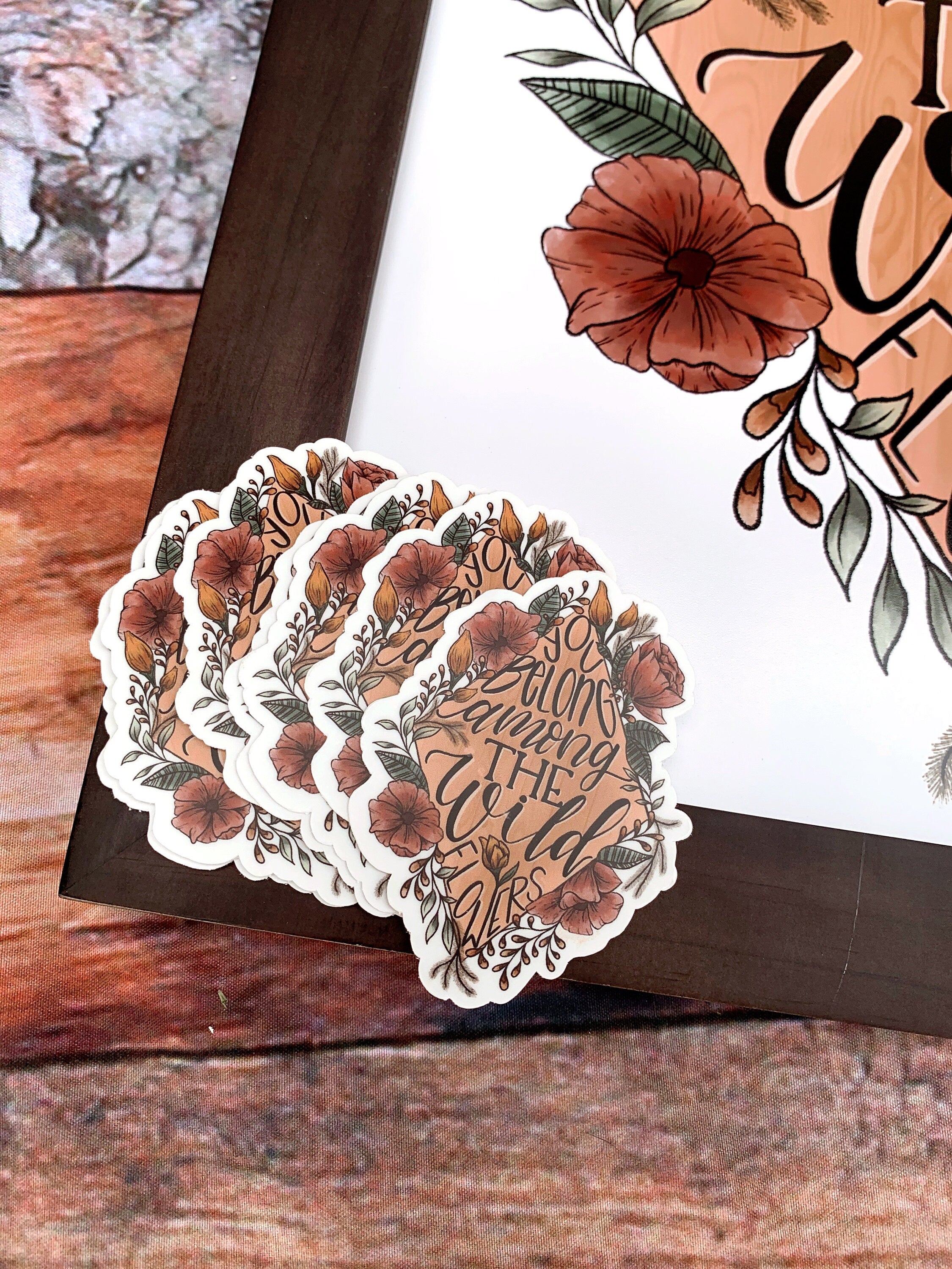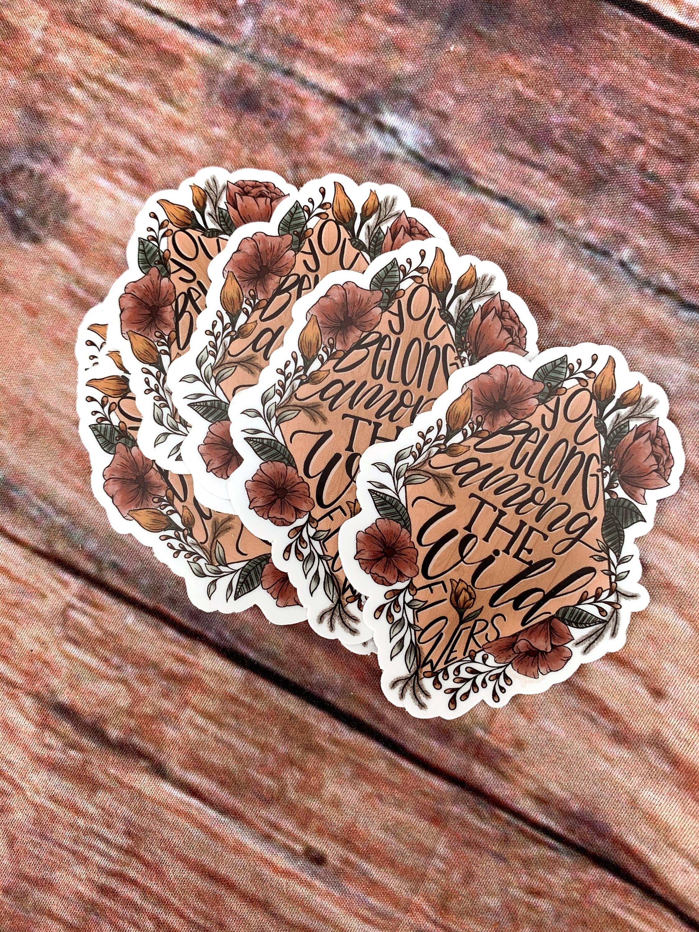 --This listing is for a single "You Belong Among the Wild Flowers" Sticker. This piece mixes floral and wood elements to bring this fun song quote to life.
