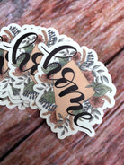 --The sticker is die cut and is 3"W x 2.25"H. It is a high-quality vinyl sticker that will work wonderfully on water bottles, laptops. It is weather-proof and very durable.