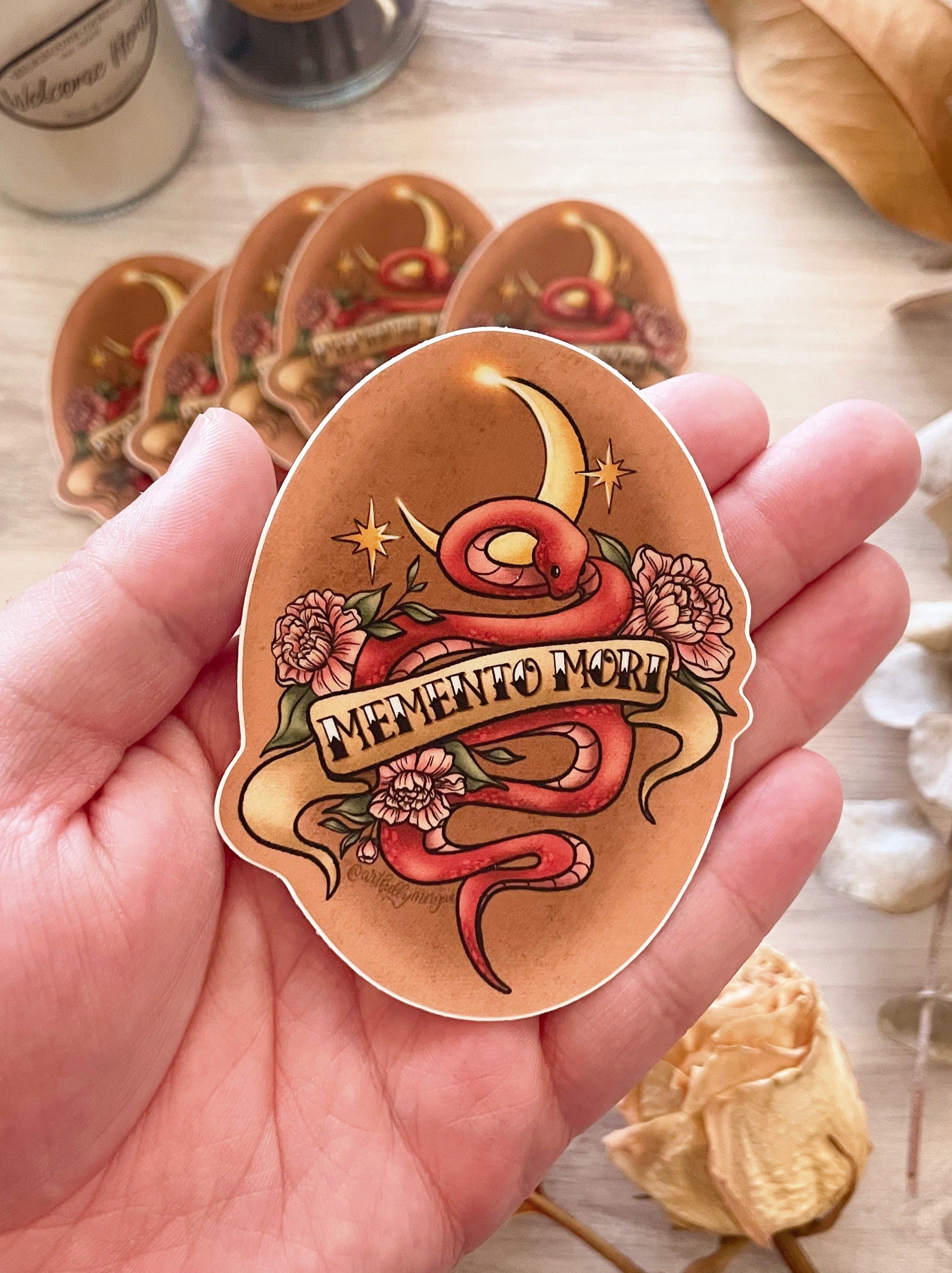 -This listing is for a single "Memento Mori" celestial snake with florals sticker.