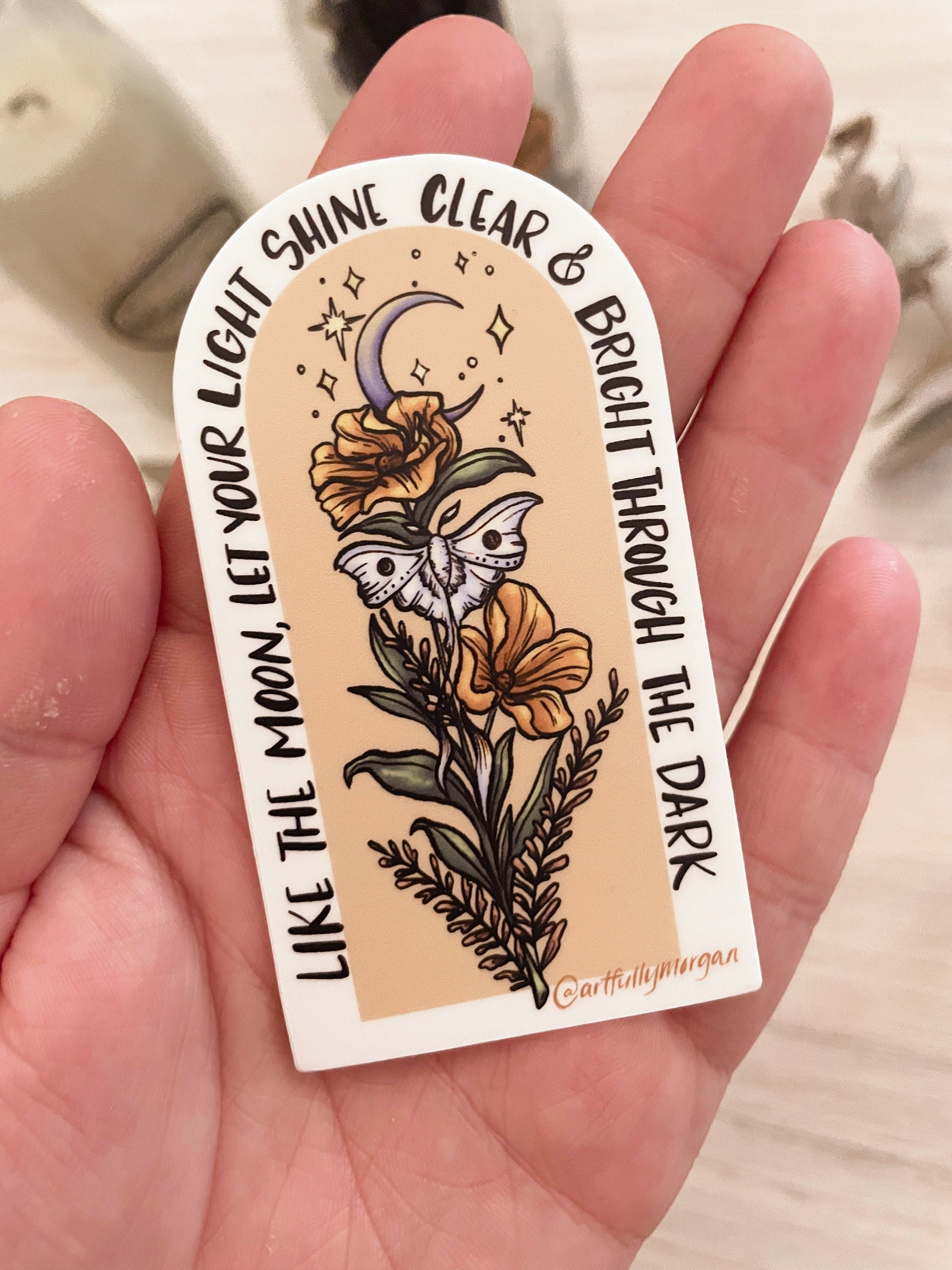 --The words on this sticker read: "Like the moon, let your light shine clear and bright through the dark."