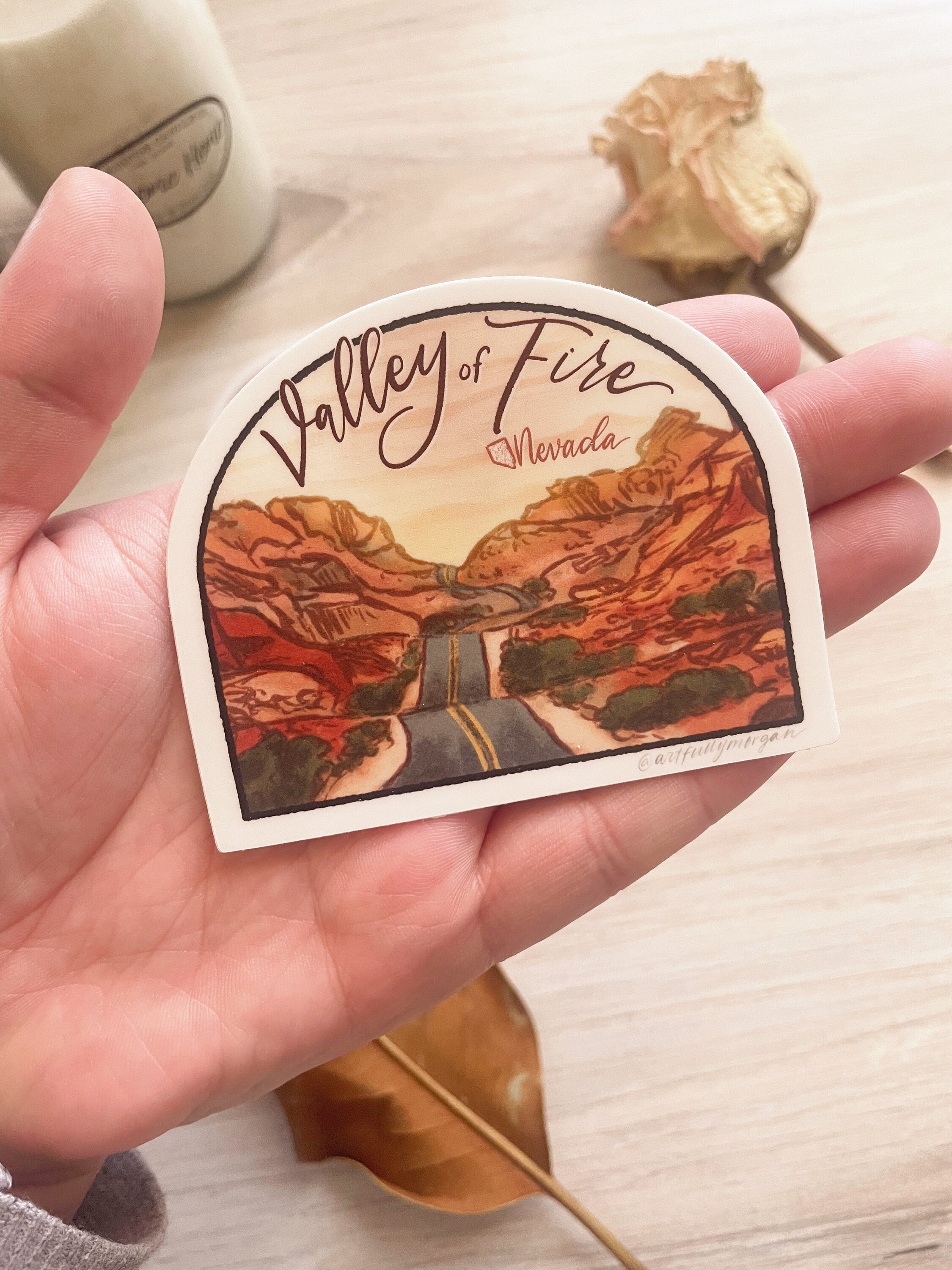 --This listing is for a single "Valley of Fire Nevada" Sticker. This Nevada desert piece mixes wood and digital art in a vibrant, firey rendering of Nevada scenery