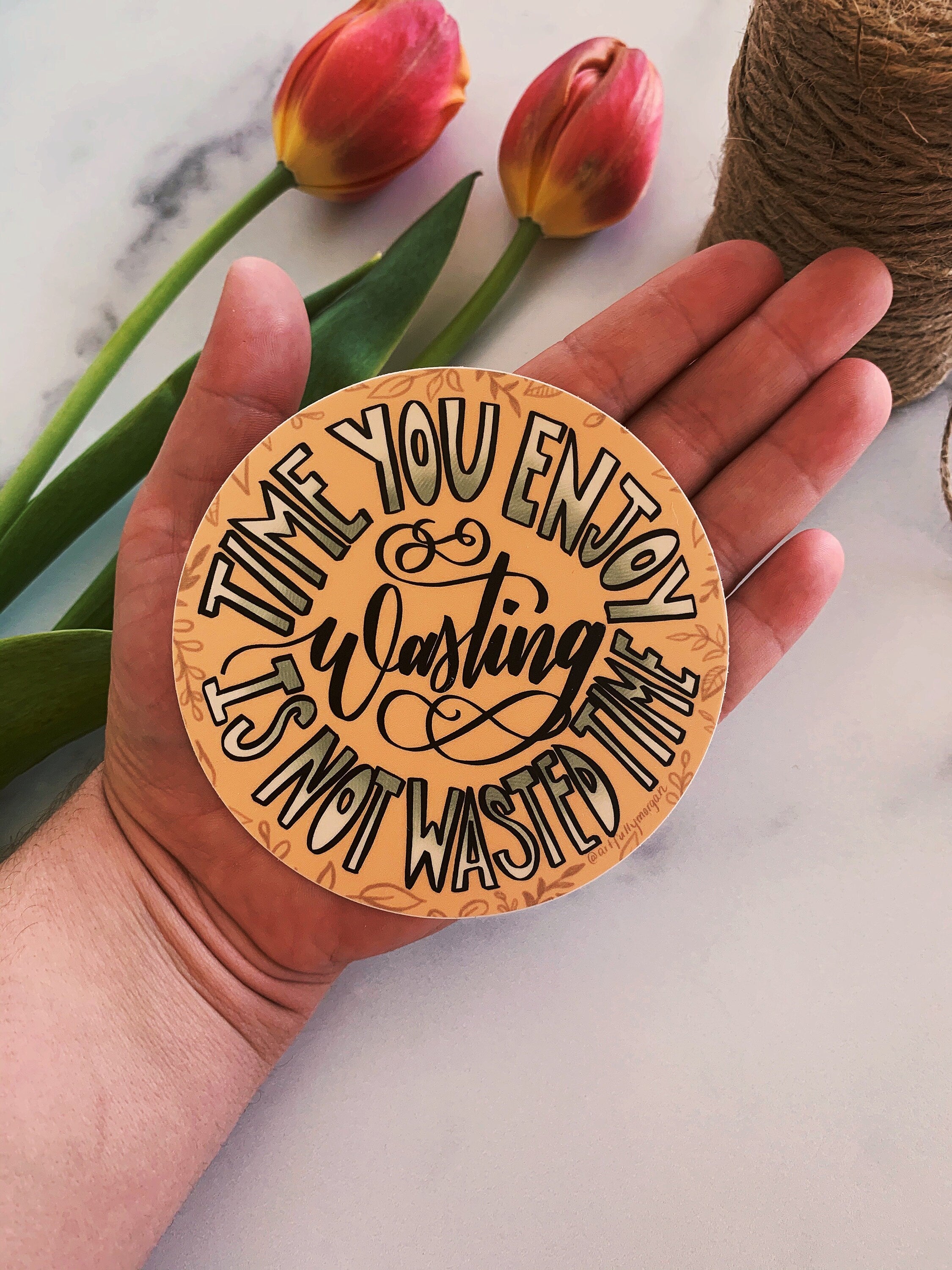 Time You Enjoy Wasting Sticker, Floral Sticker, Lettering Art Sticker