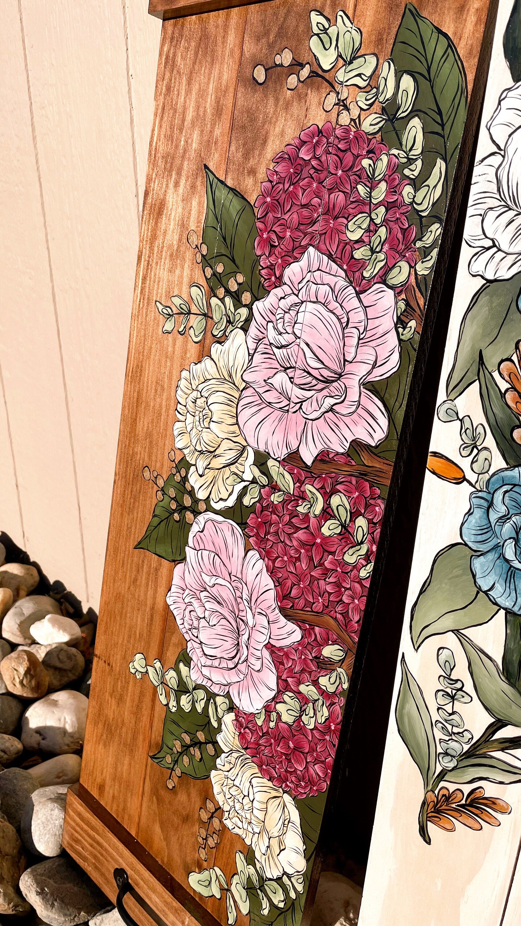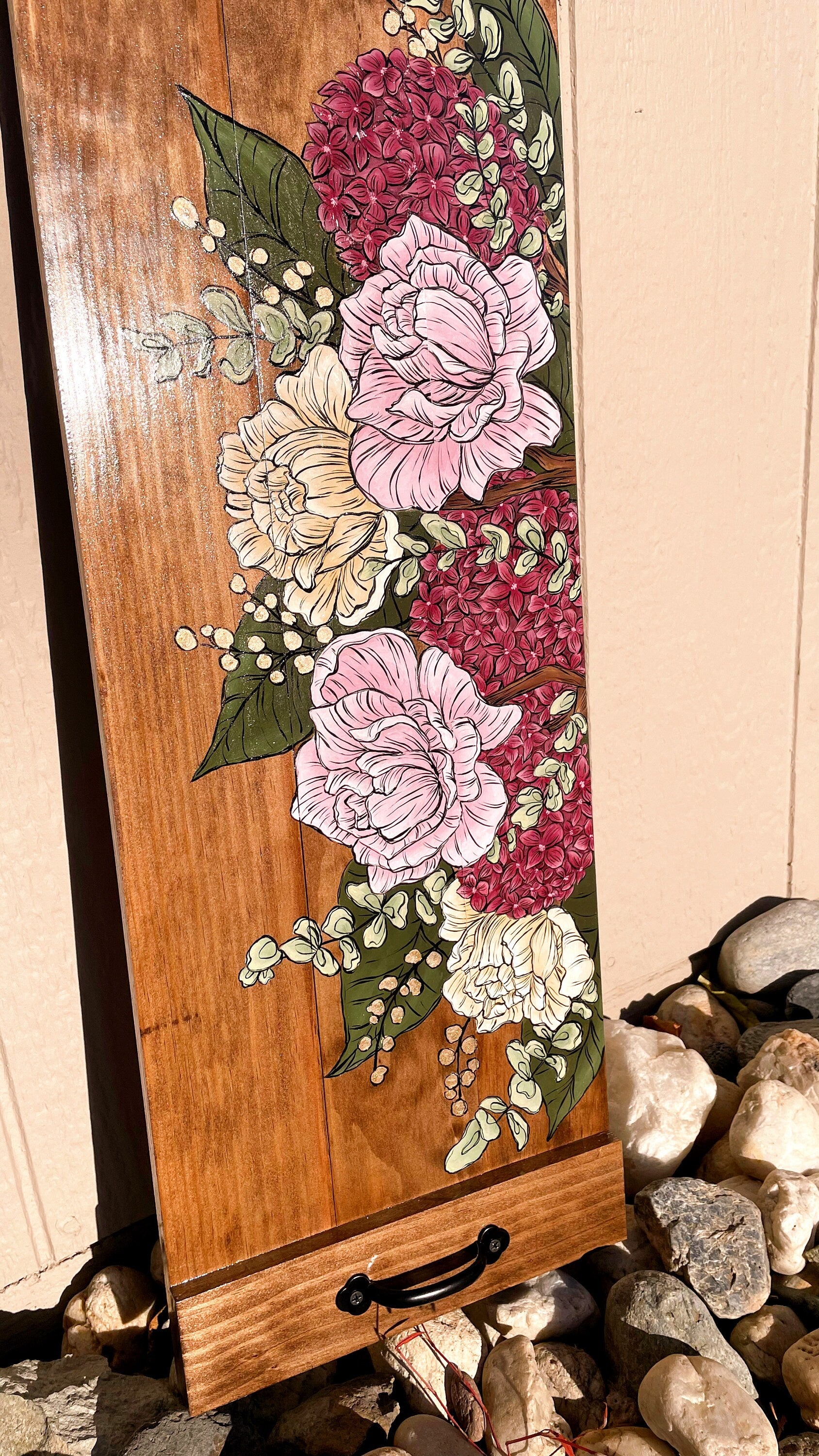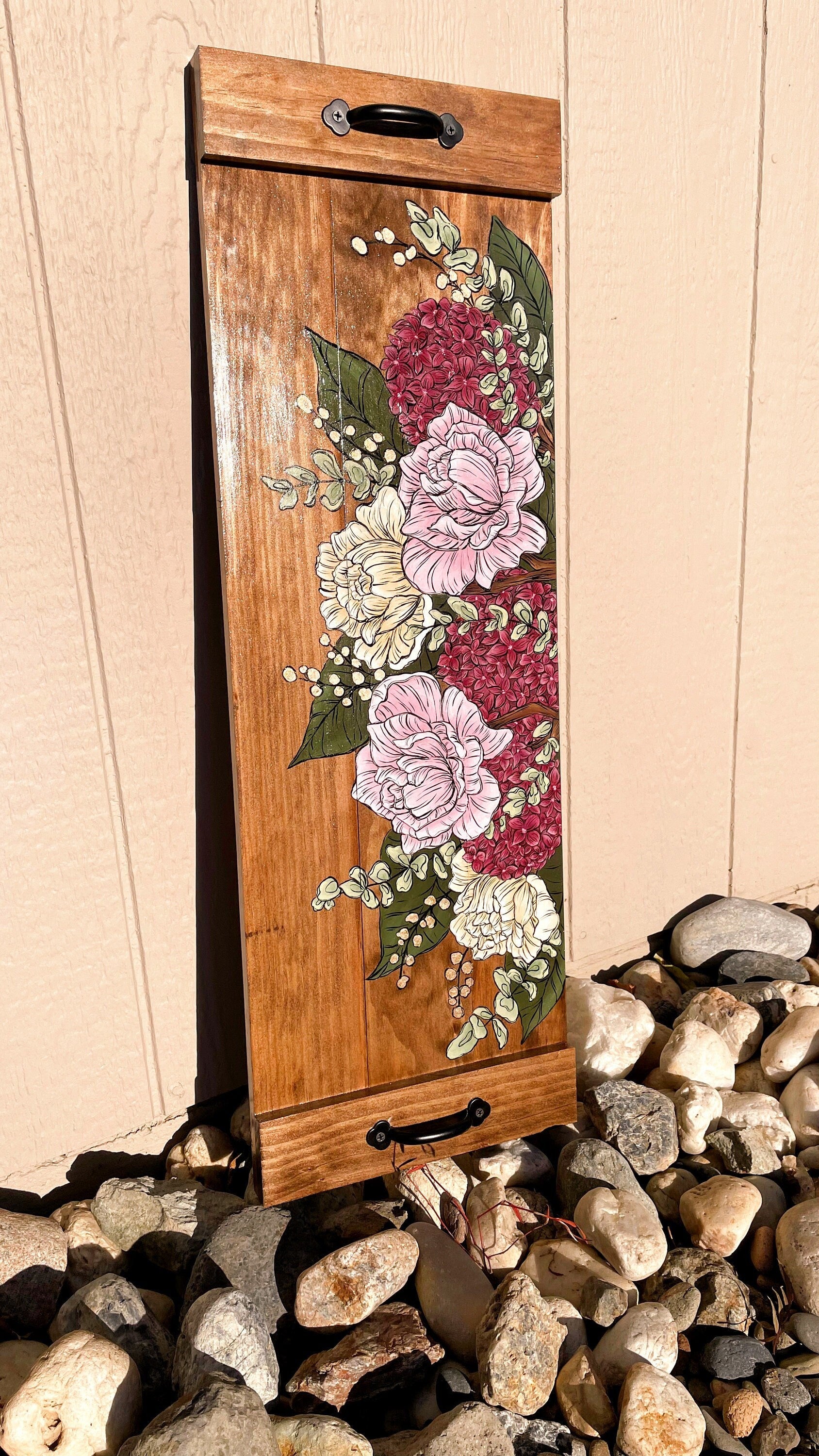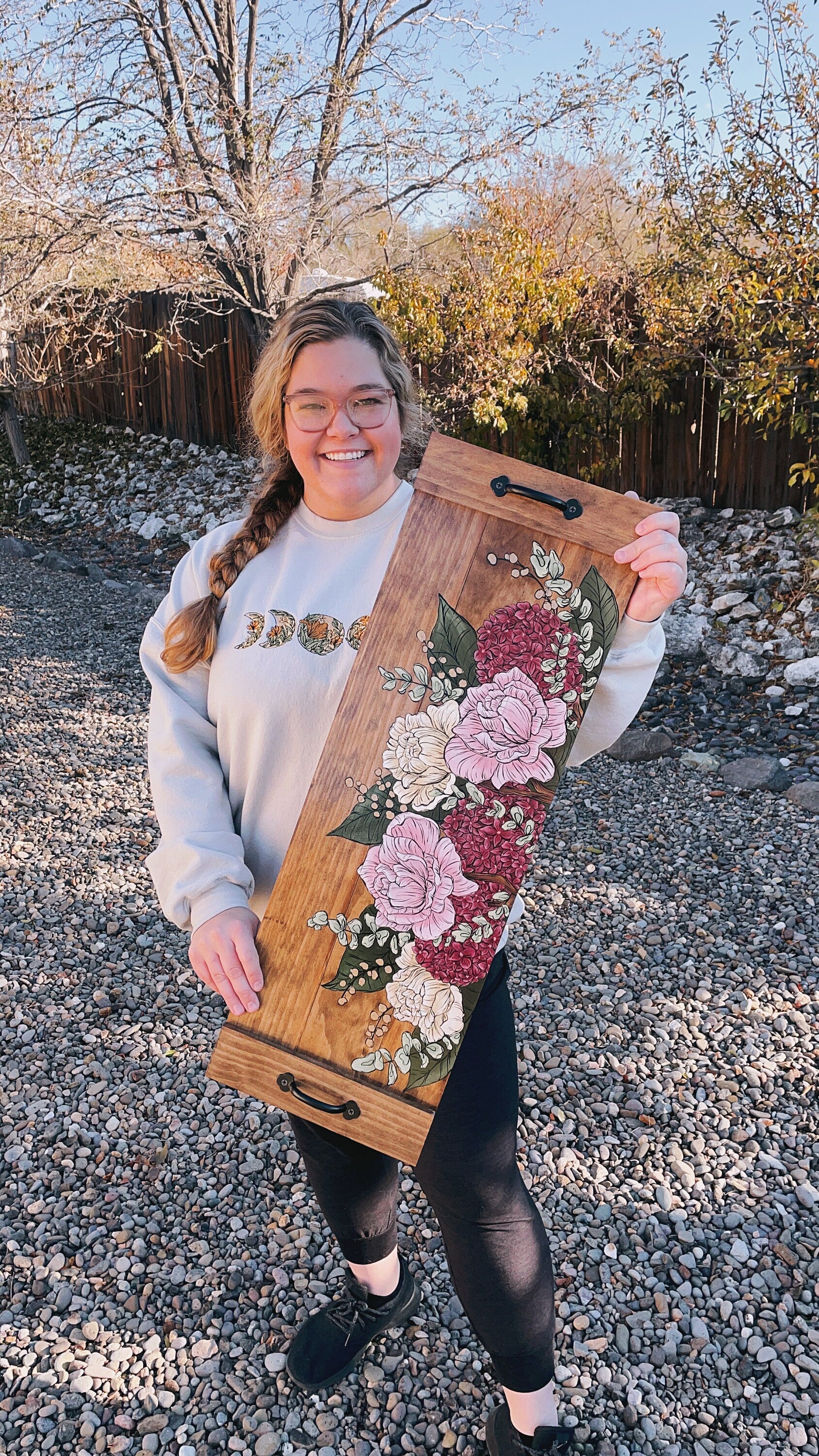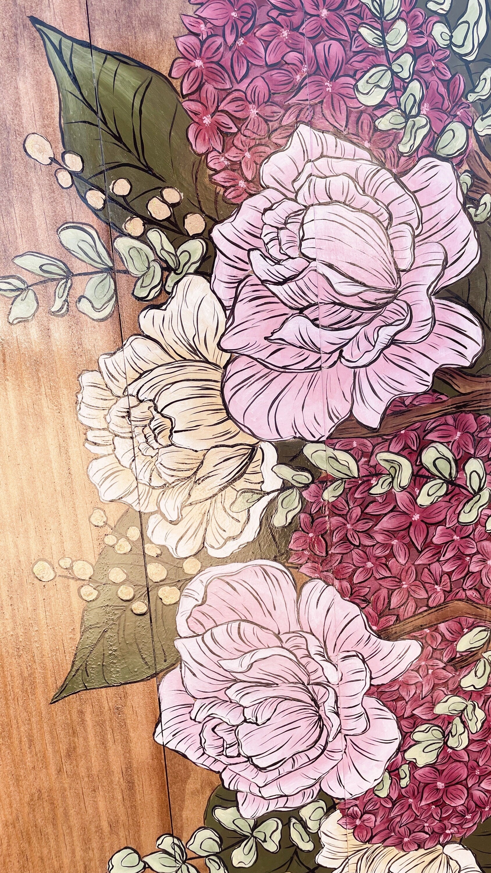 Pink + Cream Hydrangea and Rose Hand-Painted Coffee Table Tray