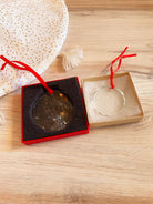 Each chunky crystal ornament comes with a gift box. The large ones come in a red box, and the small ones come in a neutral brown/yellow box.
