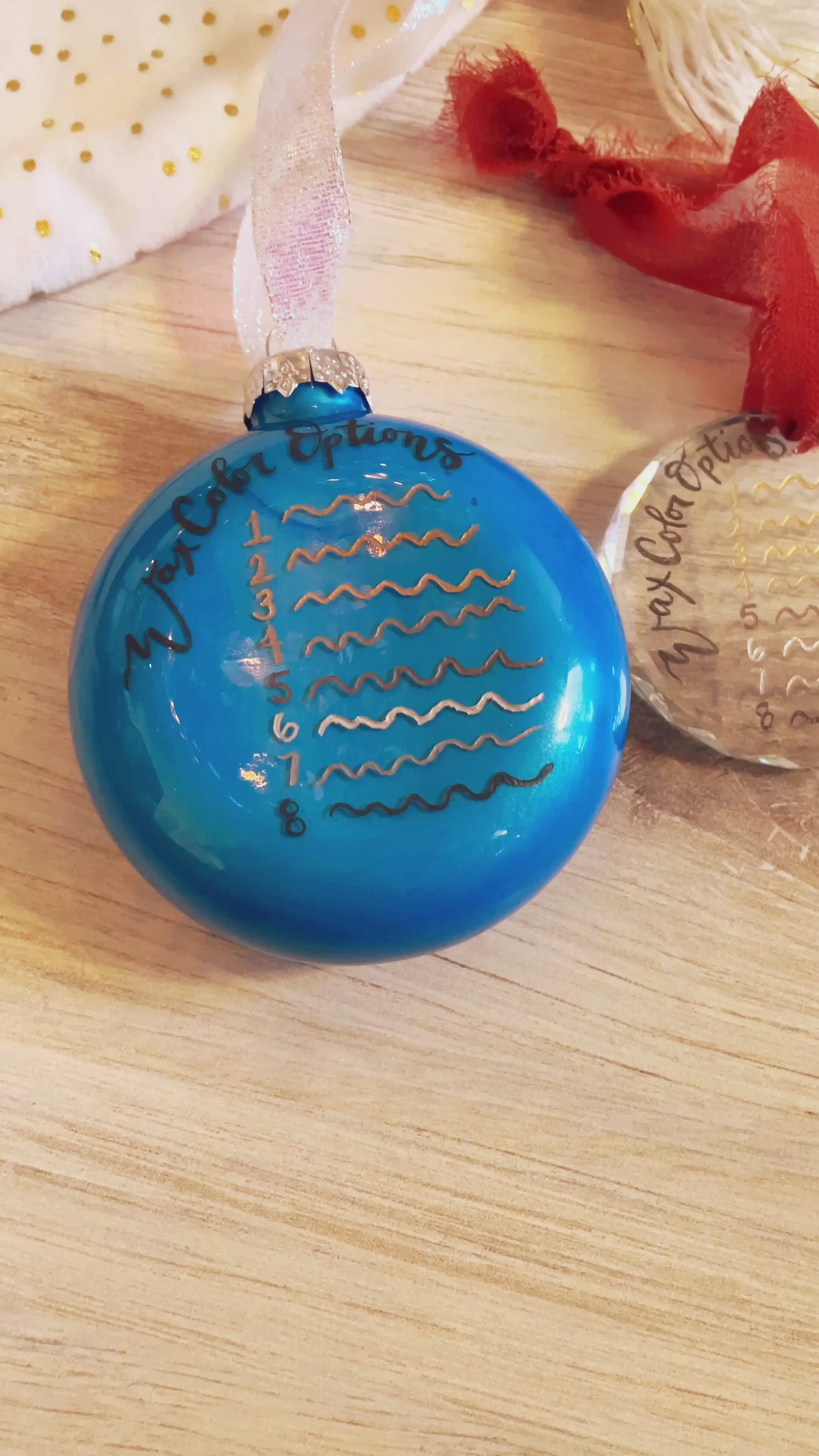 Once you have selected your personalization, you must also select the wax color that you would like to fill the engraving marks on the ornament. I have a swatch ornament created and included in the photos to show you the 8 wax colors I have available--