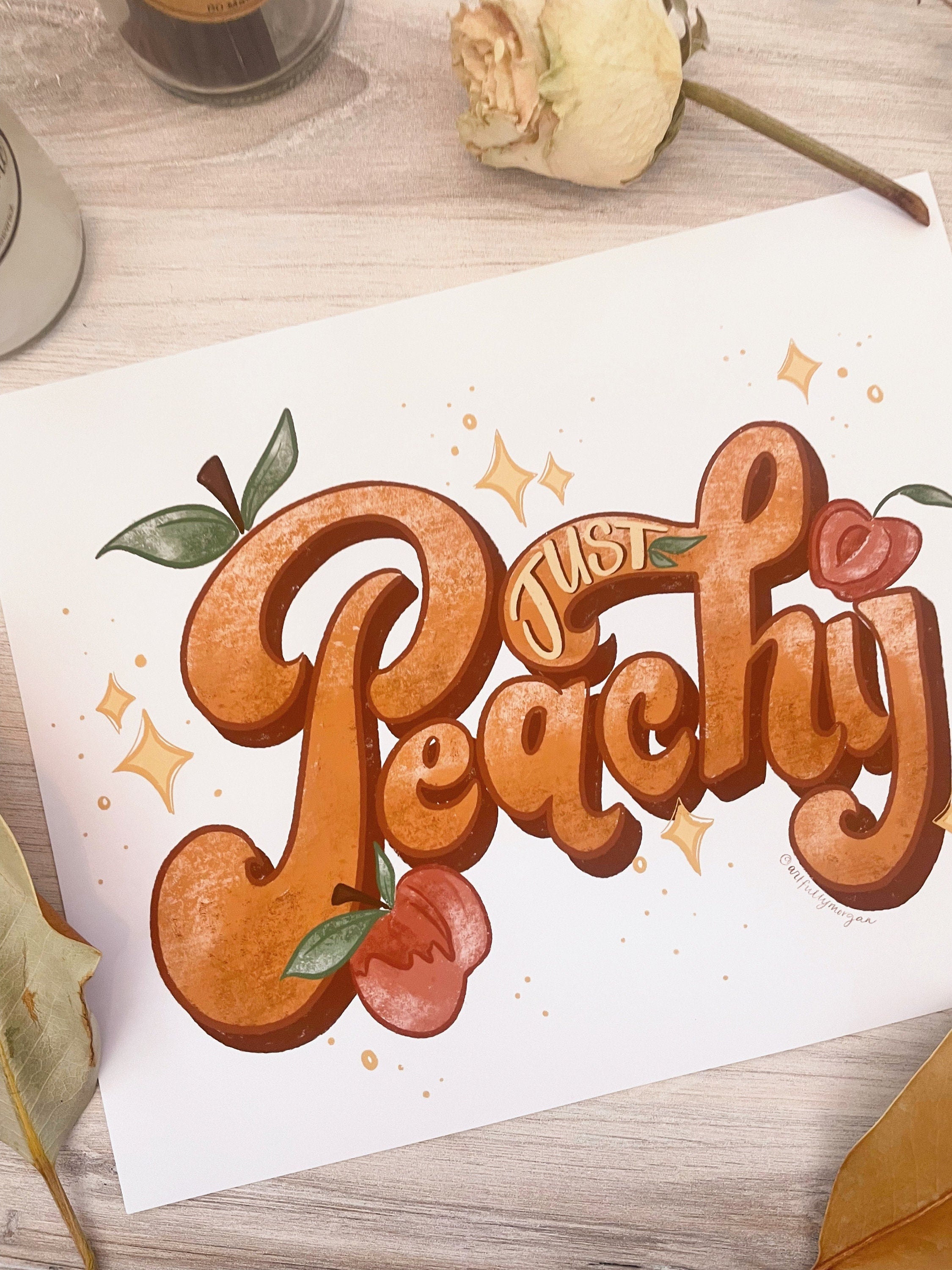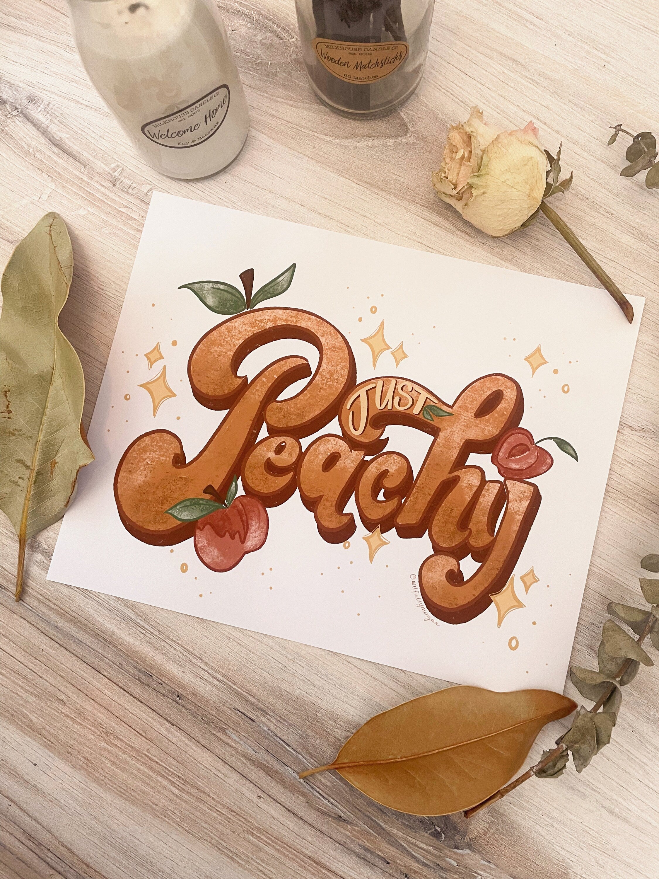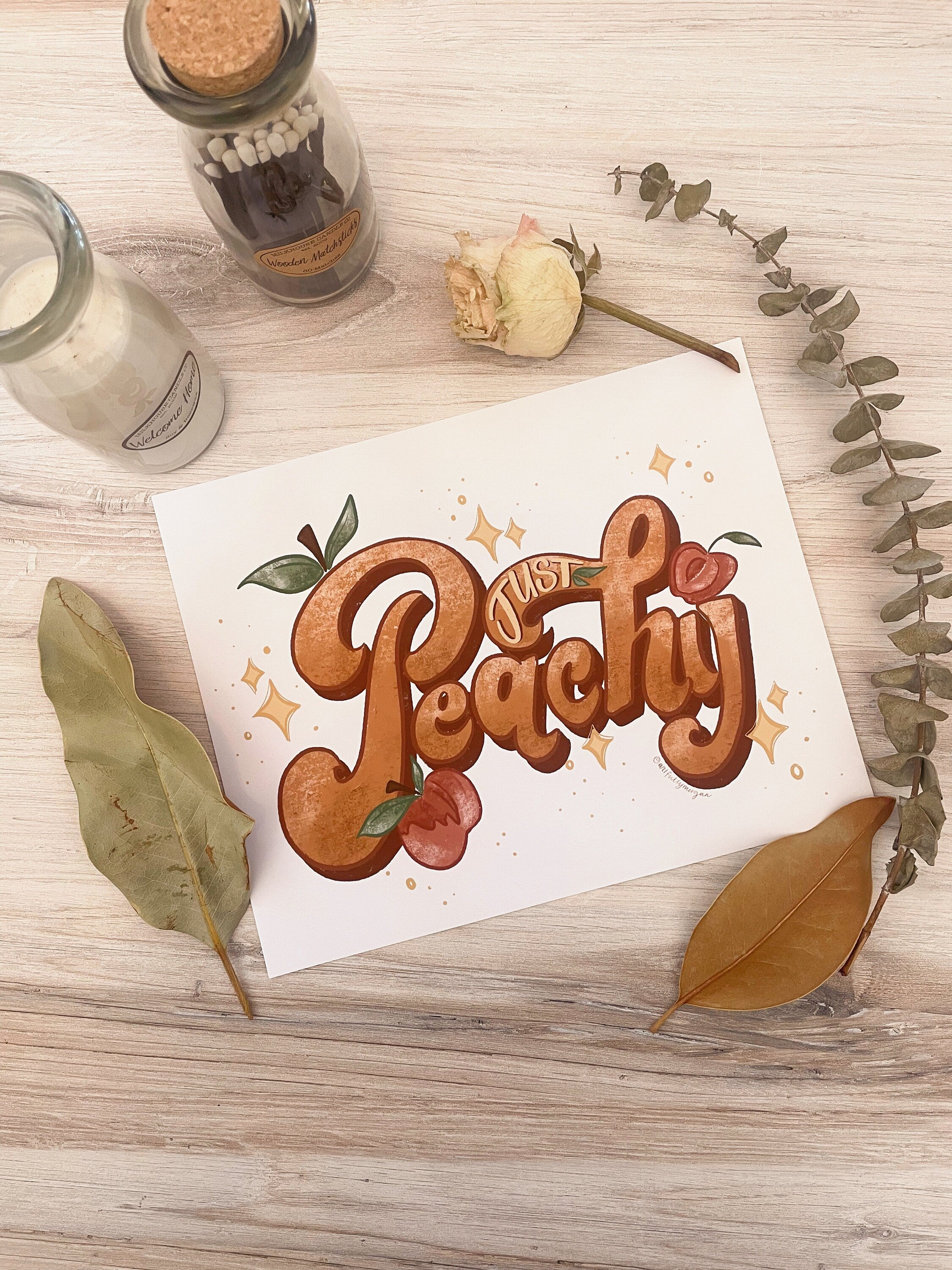Just Peachy, Vintage Lettering Art Print, 70s lettering Style Artwork