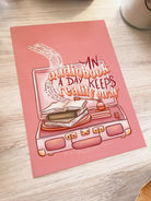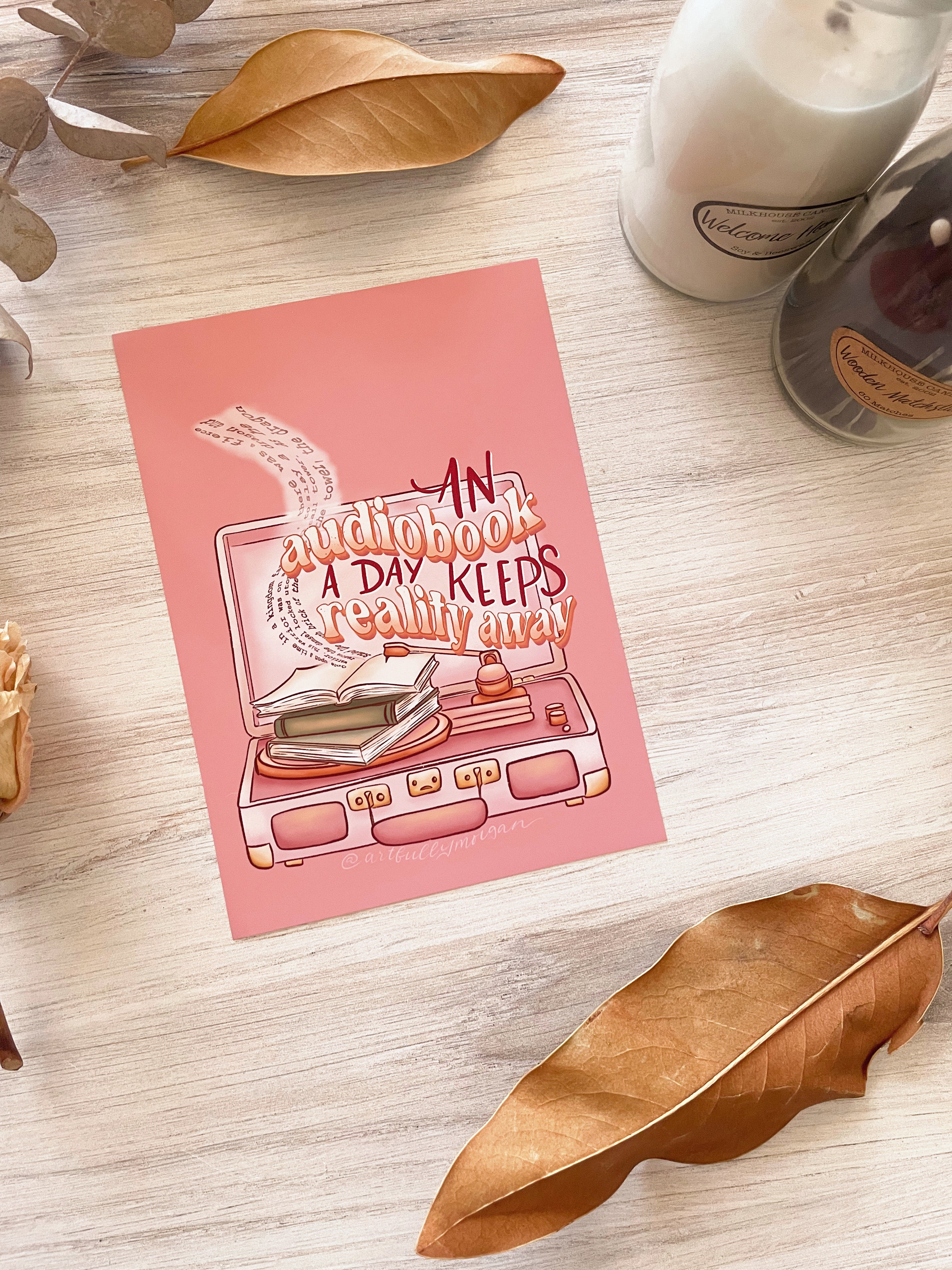 An Audiobook a Day Keeps Reality Away Art Print, Book Lover Art, Record Player Art