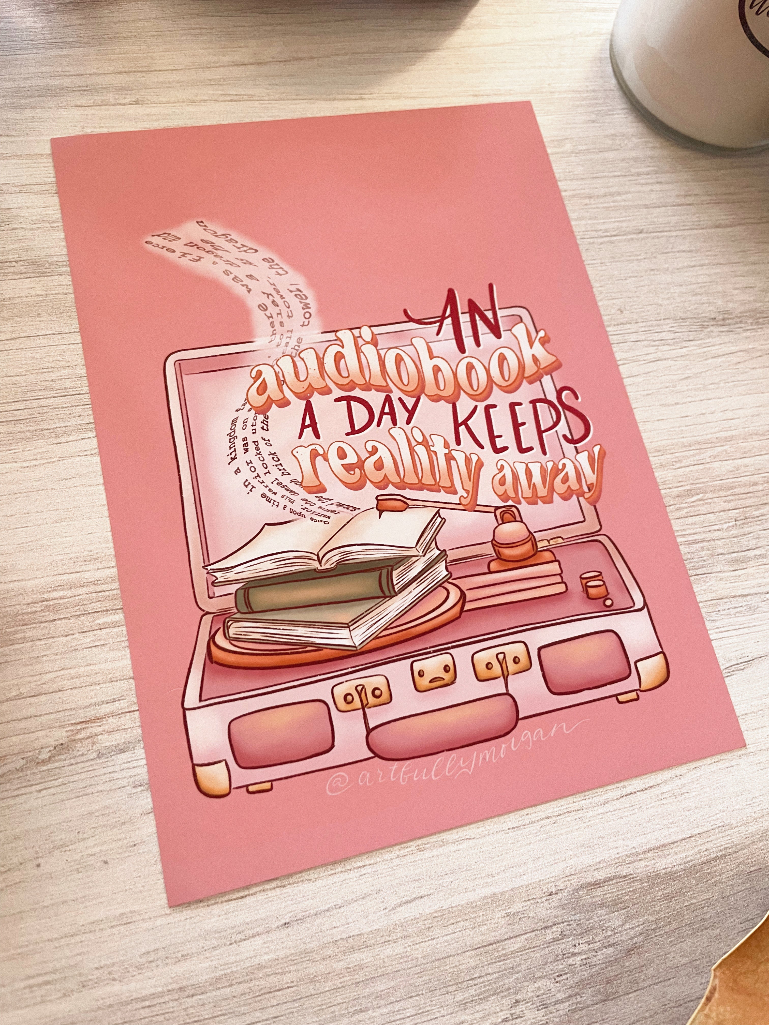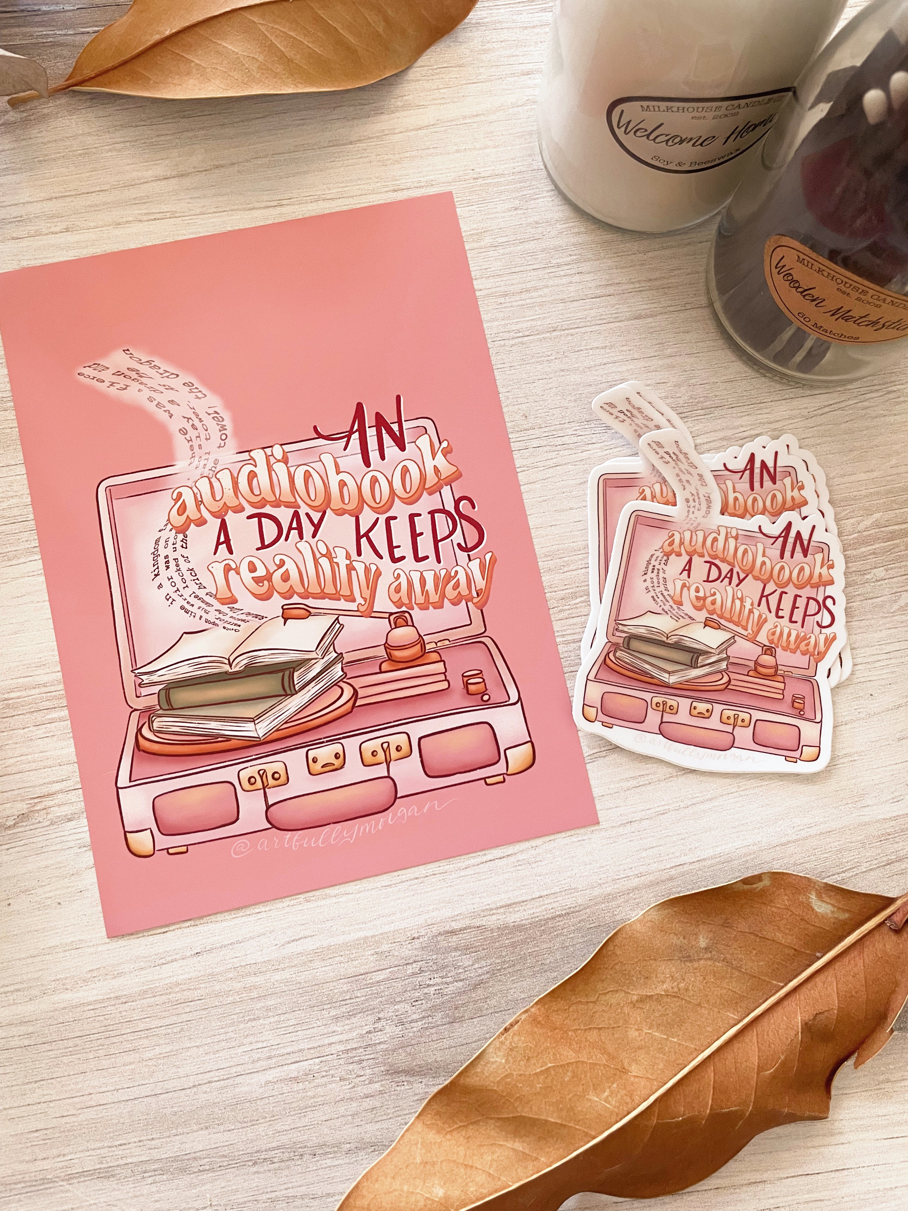 --This listing is for one 5x7 or 8x10 or 11x14 "An Audiobook a Day Keeps Reality Away" Art Print. For me, listening to audiobooks is a way of life, and this print is perfect to make sure everyone in your life knows it ;)